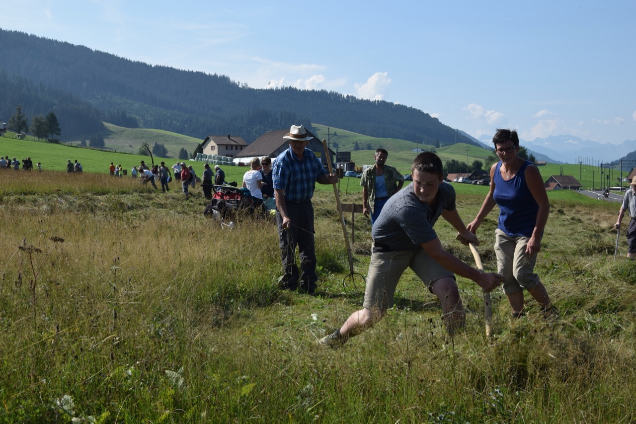 Die jüngste Teilnehmerin war mit fünf Jahren Alice Reichen aus Adelboden BE, der älteste mit vierundsiebzig Jahren Karl Arnold aus Spiringen UR. Das Streuemähen von Rothenthurm ist so etwas wie die Königsetappe zum Schluss der Wettkämpfe in der Schweiz.