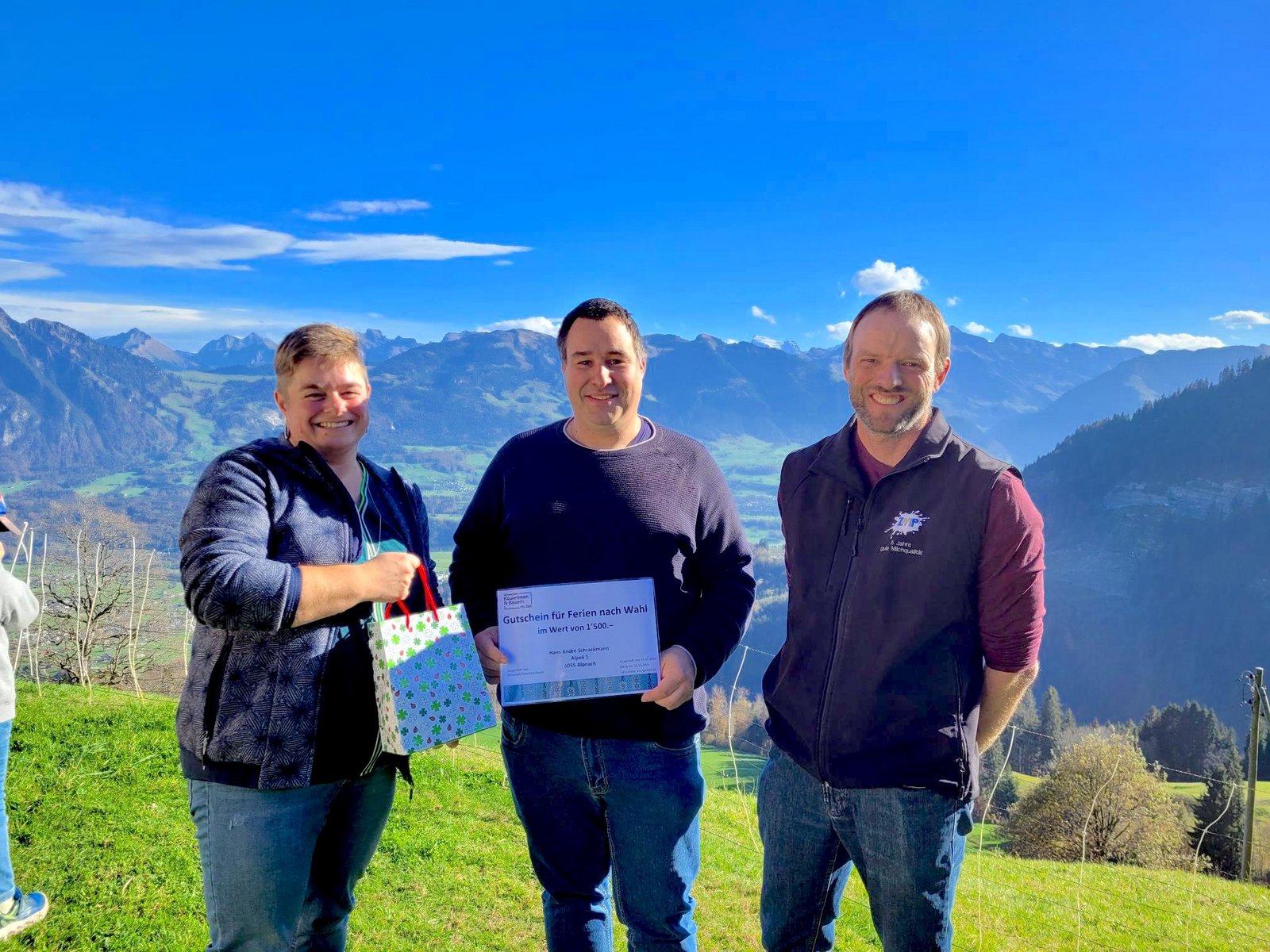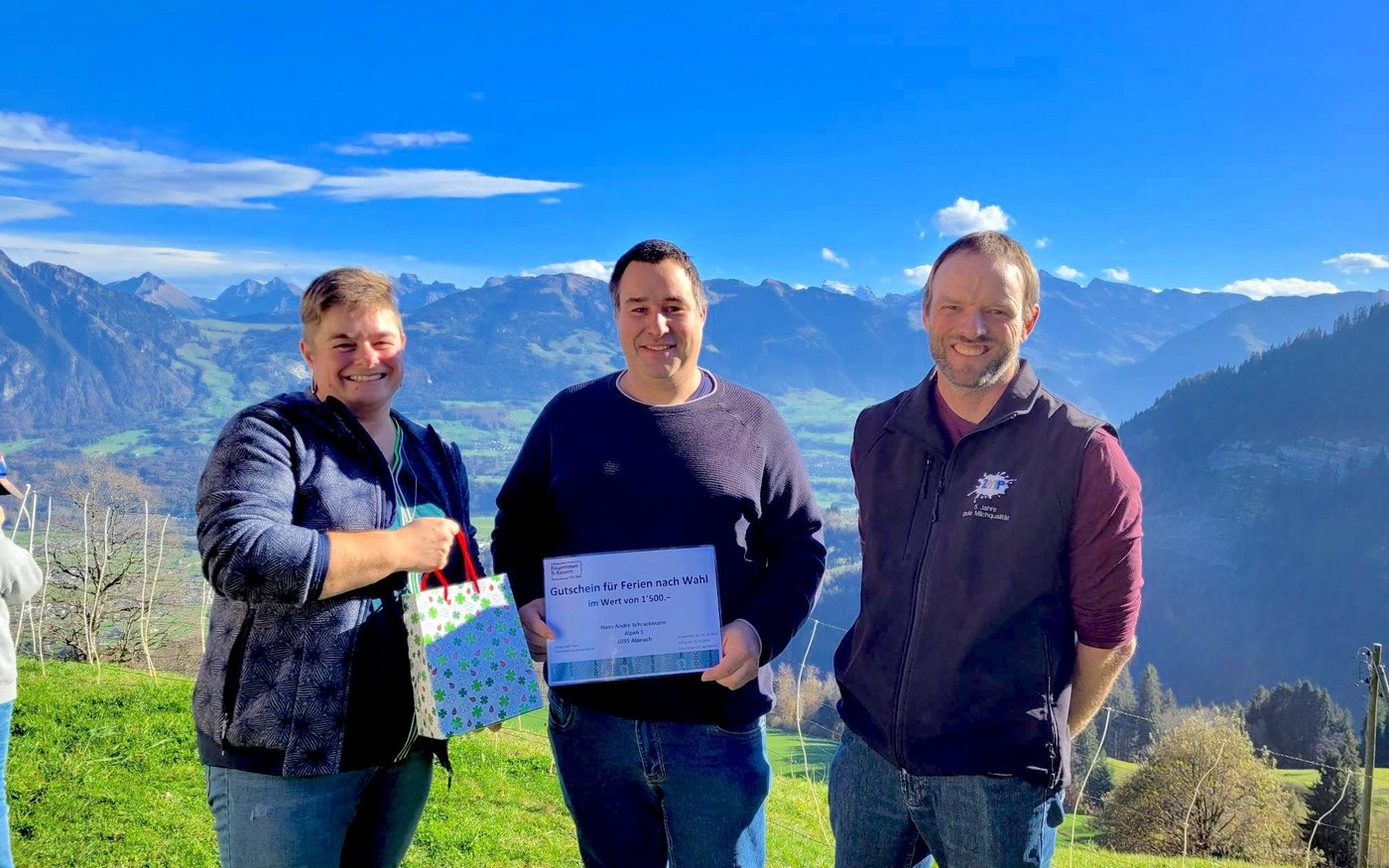 Heidi Mathis und Simon Niederberger vom Obwaldner Bauernverband überreichten dem Gewinner den Gutschein. Auf die Frage, ob in die Ferien zu gehen ein Müssen oder Dürfen sei, war die Antwort des Bauers klar: Dürfen. Dies sei aber nur dank der tatkräftigen Unterstützung seiner Eltern möglich. Auch beim Brunch kann die Familie Schrackmann seit über zehn Jahren auf die gleichen fleissigen Helferinnen und Helfer aus der Familie zählen.