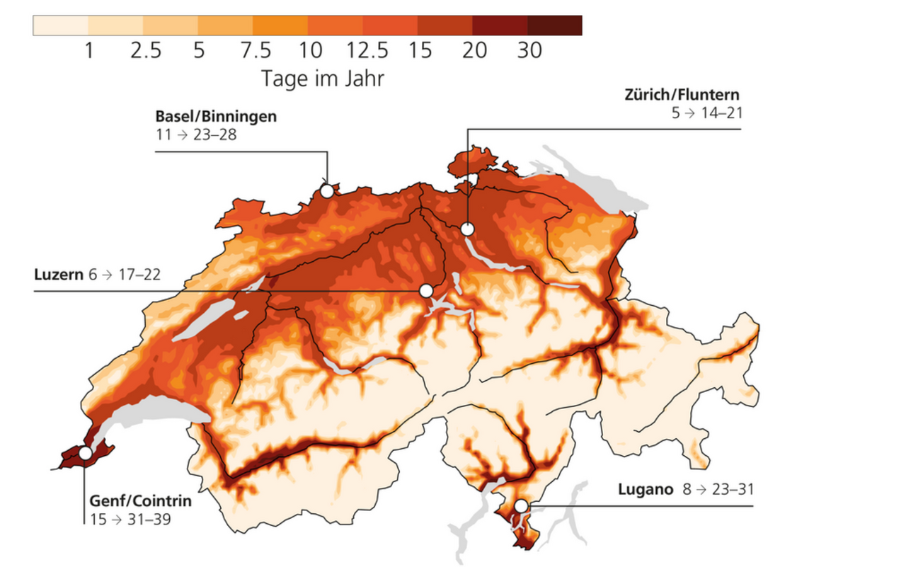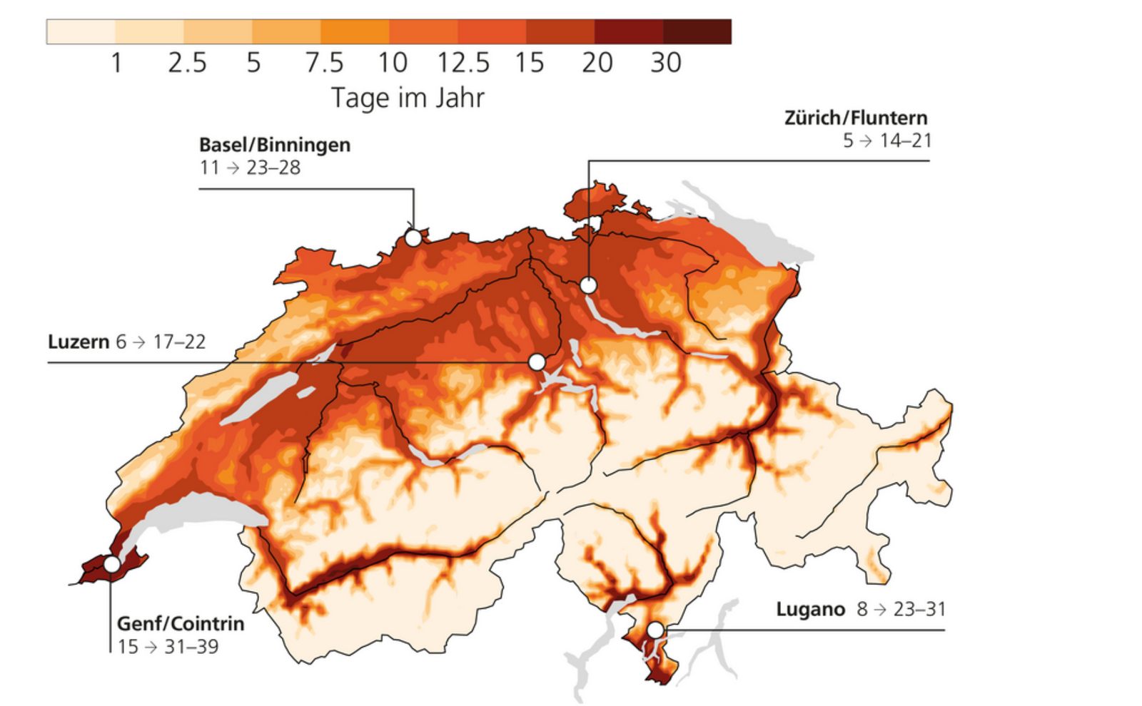 Bereits am vergangenen Freitag stellte Meteoschweiz Höchsttemperaturen von fast bis zu 35 Grad fest, wie der Wetterdienst auf Anfrage der Nachrichtenagentur Keystone-SDA bekannt gab. Für die gesamte Schweiz gilt bis und mit Mittwoch der kommenden Woche unterhalb von 800 Metern über Meer die Hitze-Gefahrenstufe 3. Im Tessin gilt die Gefahrenstufe 4 von 5. Diese bedeutet laut Meteoschweiz ein grosses Risiko für Kreislaufbeschwerden und körperliches Unwohlsein.