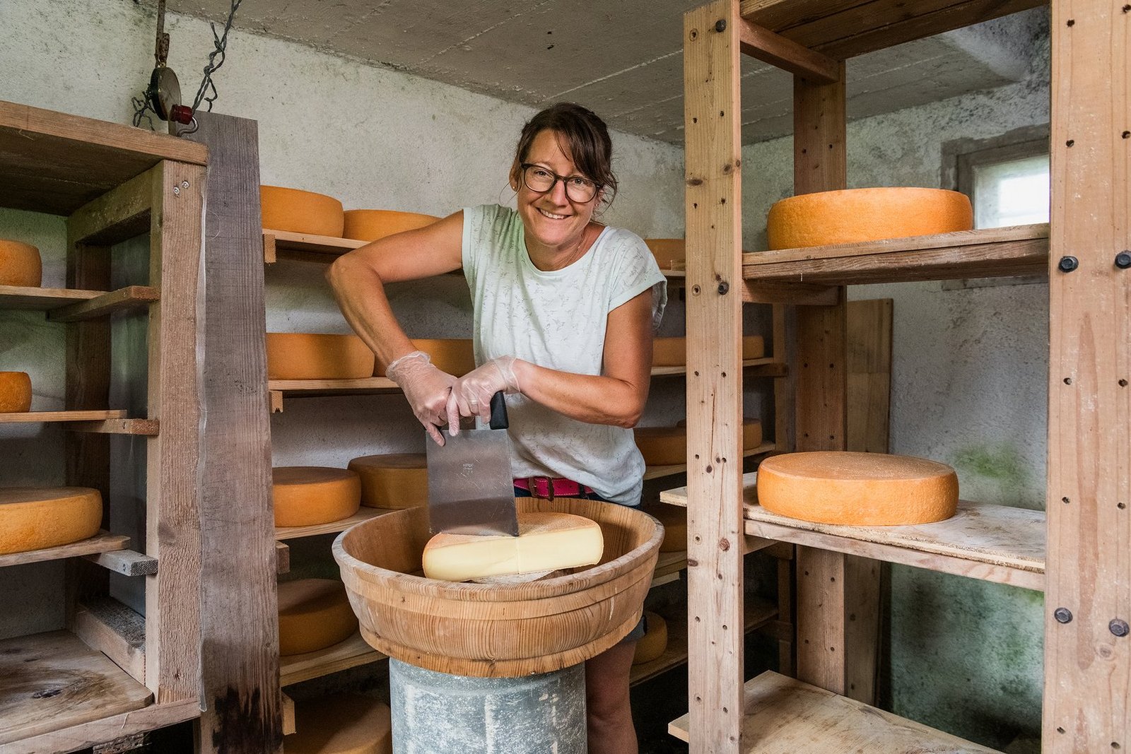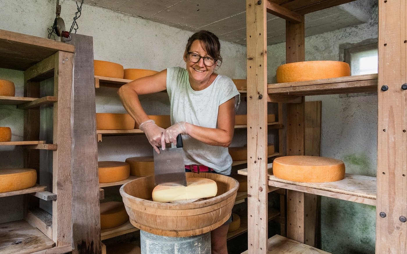 Im Gaden ist sie für Allrounder-Arbeiten zuständig: Misten, Streuen, Füttern, Striegeln. Ihr Mann melkt währenddessen mit der Absauganlage mit drei Aggregaten. Regelmässig hütet sie auch die beiden Enkelkinder. «Wir nehmen sie dann halt mit in den Stall. Sie laufen einfach mit und helfen etwas – das klappt gut.»