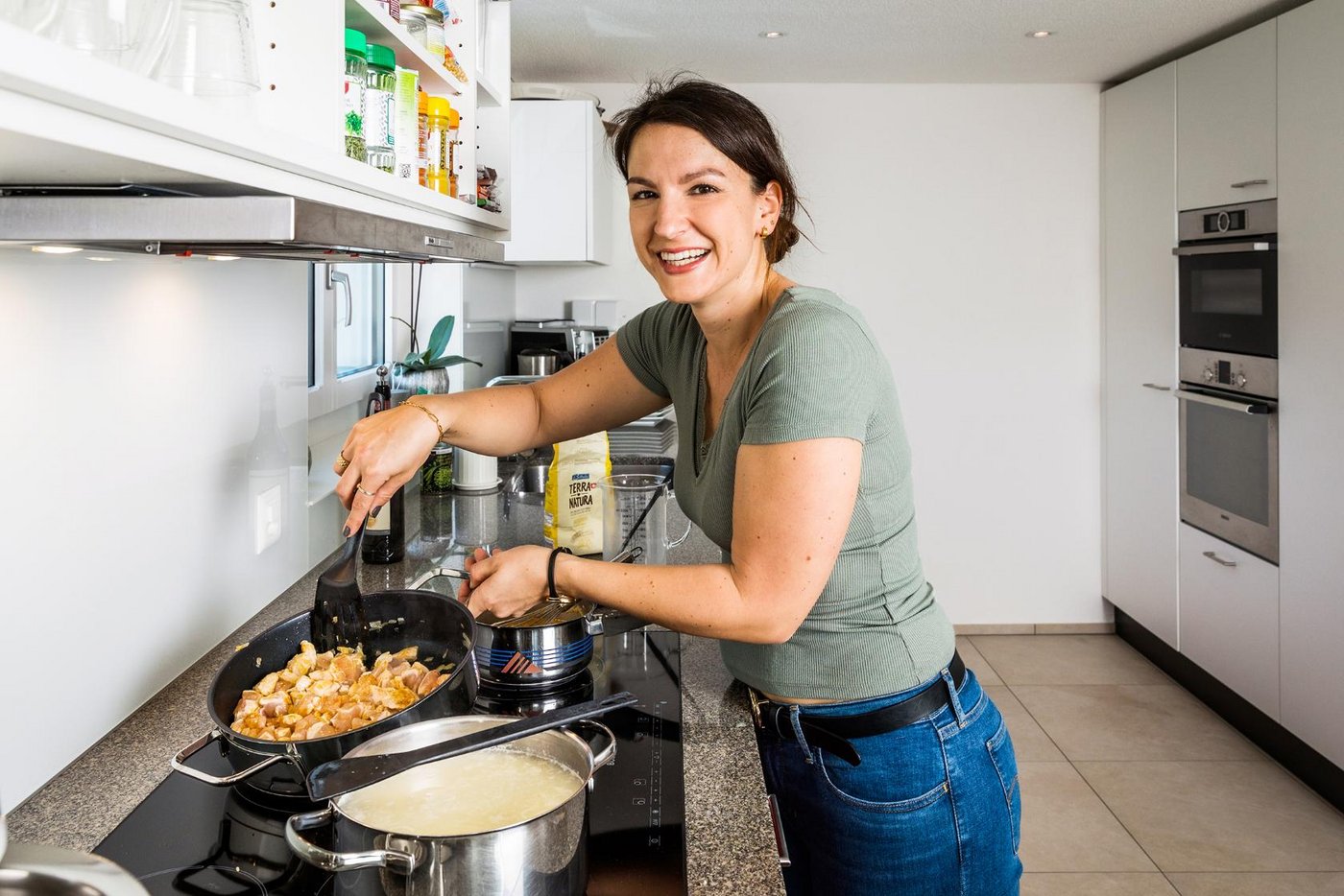 Das grosse Fenster ist im Esszimmer des Wohnhauses in Sins AG ein Blickfang: Die Sicht geht auf das gegenüberliegende Stallgebäude in der saftig grünen Landschaft. Und eigentlich ist es kein Fenster, sondern eine Tür: «Da ist noch ein Autounterstand mit Terrasse darauf geplant», bemerkt Daniela Huwiler. Noch sind nicht alle Arbeiten abgeschlossen, aber der Betrieb «I de Wannä» ist schon längst zu ihrem Zuhause…