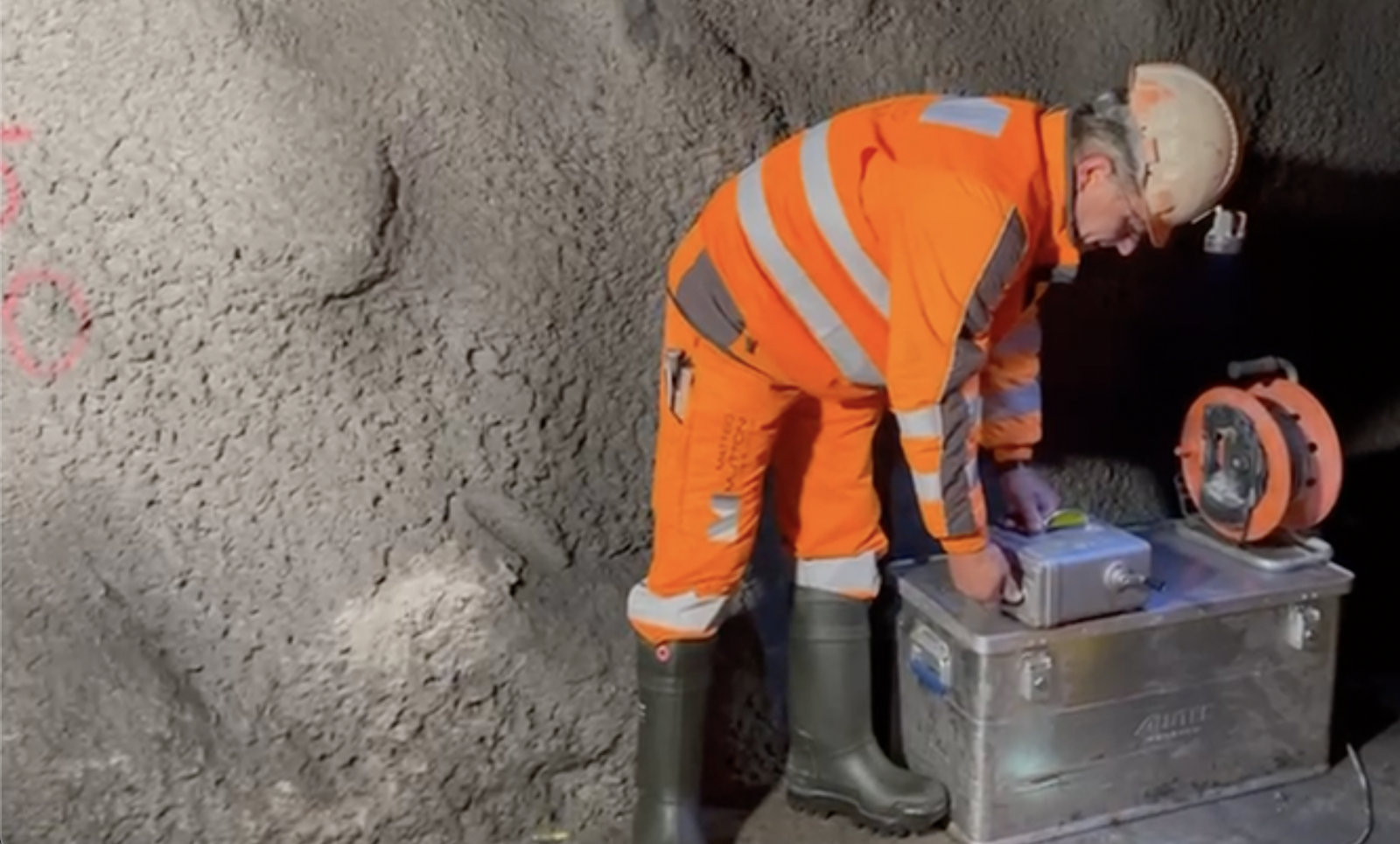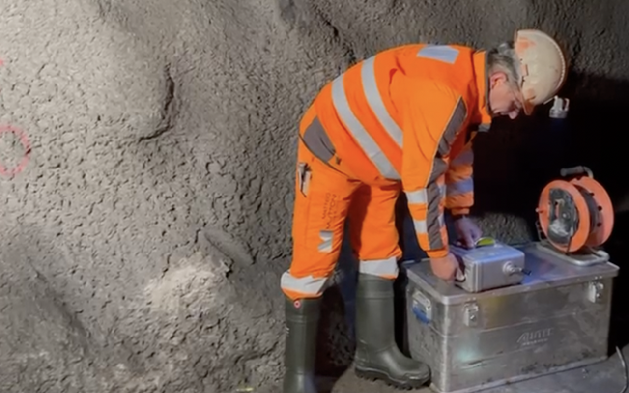 Der Mineur hornte einmal und dann noch mehrere Mal. Der Sprengmeister kurbelte und betätigte den Auslöser. Sekundenspäter ein grosser Knall, ein zweiter folgt und Staub verteilt sich im Sondierstollen. Diese Sprengung in den Berg konnten am Montag, 3. Juni, über 20 Medienschaffende aus einer Sicherheitsnische heraus verfolgen.