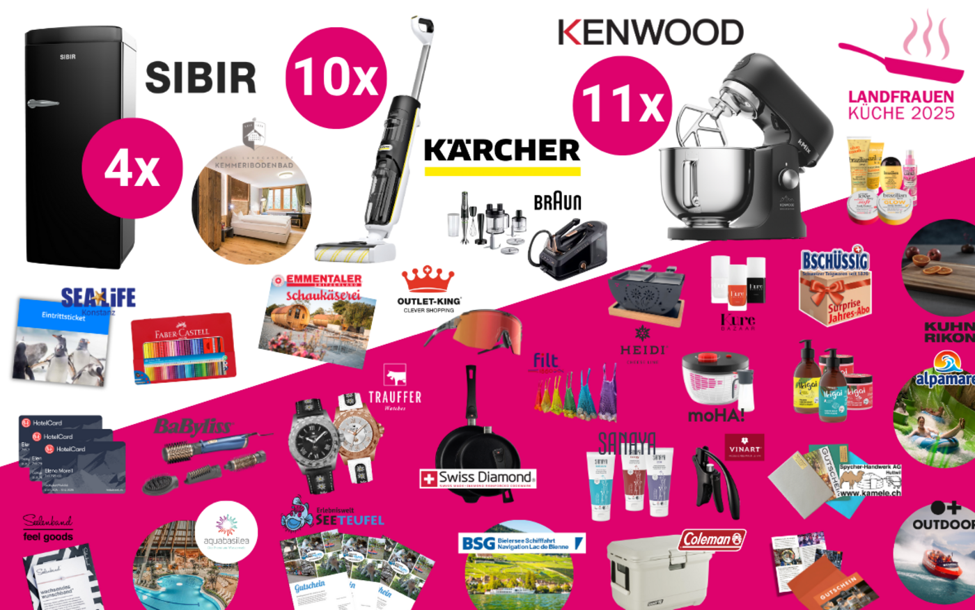 Jede Woche stellen wir Ihnen eine Quizfrage zu den Kandidatinnen und verlosen tolle Preise im Gesamtwert von über 19’000 Franken, darunter 4x einen Retrokühlschrank von Sibir, 10x einen Saugwischer von Kärcher, 11x eine Küchenmaschine kMix Swiss Edition von Kenwoodund vieles mehr.