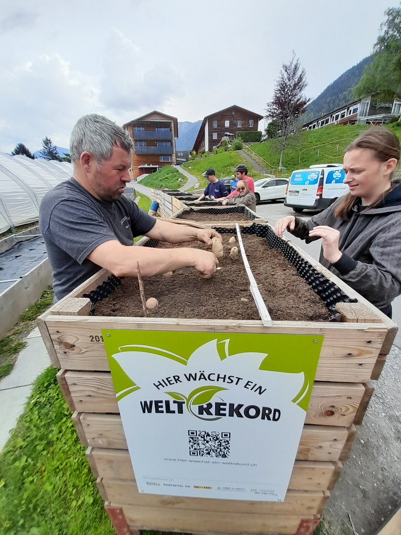 Als Pflanzplatz hat man laut Mitteilung den Gutsbetrieb Plankis am Stadtrand von Chur gewählt. Der dortige Betriebsleiter Hansueli Salis hat zusammen mit Städterinnen und Städtern rund 50 Kilo Kartoffeln in die Erde gebracht. Am vergangenen Freitag sodann eröffnete der Vorstand des Bündner Bauernverbands im Beisein von Regierungsratspräsident Marcus Caduff den wachsenden Weltrekord.