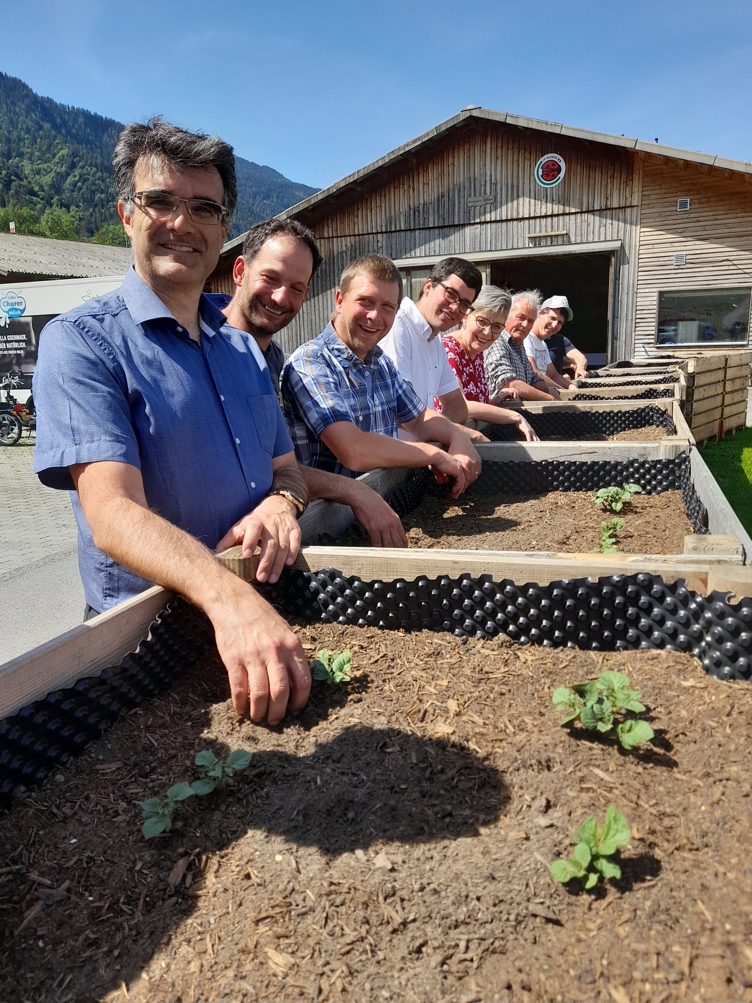 Mit Kartoffeln aus allen Kantonen soll anlässlich der Sichlete in Bern am 19. September die weltgrösste Rösti gebraten werden, um das 125-jährige Jubiläum des Schweizer Bauernverbands gebührend zu feiern. Bereits bevor das traditionelle Kartoffelgericht in der Hauptstadt zubereitet wird, nutzen die kantonalen Bauernverbände die Gelegenheit, um beim Kartoffelsetzen mit der Bevölkerung in Kontakt zu kommen. So auch in Graubünden, wo die Knollen in von der Landi zur Verfügung gestellten Paloxen heranwachsen.