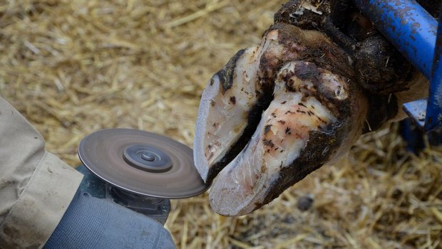 Worauf Fenner besonders zu achten hat, sind allfällige Anzeichen von Mortellaro: Die ansteckende Krankheit Dermatitis digitalis, an welcher verschiedene Bakterien beteiligt sind, wurde erstmals in den Siebzigern des letzten Jahrhunderts beschrieben und breitet sich immer mehr aus. Bis heute sind fast drei Viertel der inländischen Viehherden damit infiziert. Kontrolliert wird der Zwischenklauenspalt und der angrenzende Ballenbereich. An der Grenze vom Horn zur Haut entstehen Entzündungen, die für das Tier sehr schmerzhaft sind und zu Lahmheiten und Leistungseinbussen führen können.