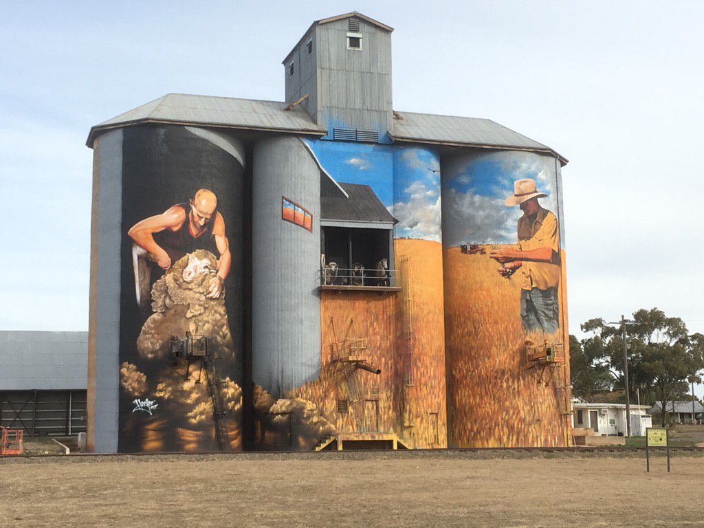Am weitesten geht mit der Silokunst vermutlich das Städtchen Brim in Südaustralien. Dort hat einen "Kunst-Silo-Weg" auf die Beine gestellt, beziehungsweise auf die Silos gemalt. Dafür engagierte man einige der besten Strassenkünstler des Landes. Hier finden Sie einen Bericht über das Projekt, untenstehend ein Video zur Entstehung.