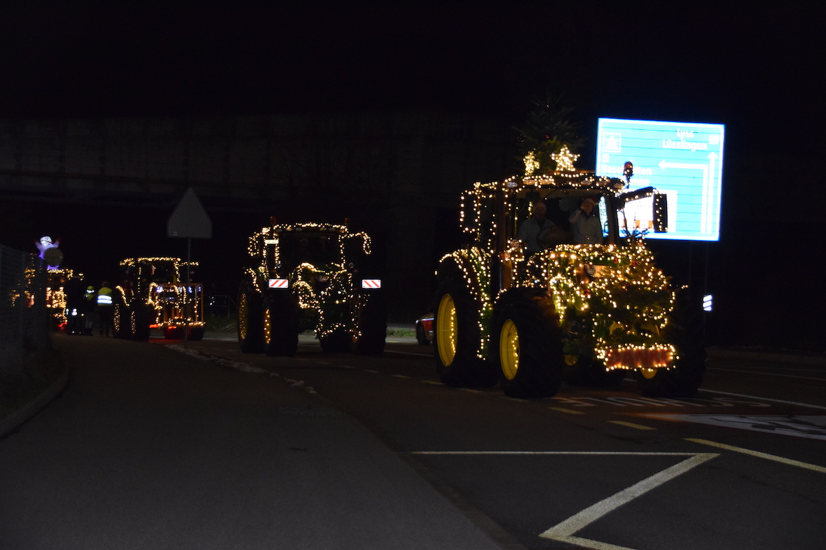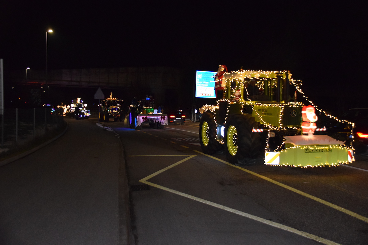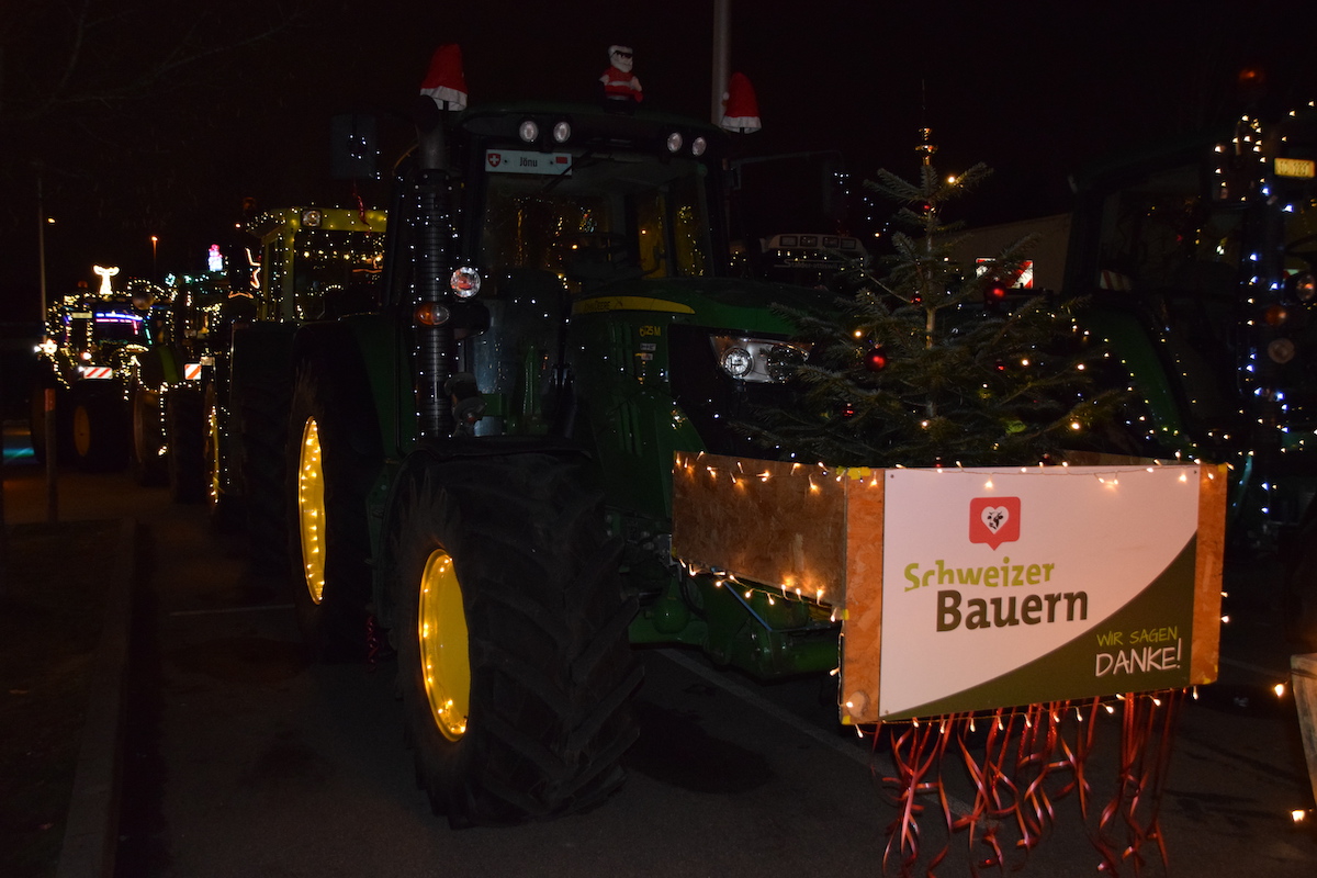 Obwohl es noch nicht Weihnachten ist, kam am Samstagabend in der Stadt Solothurn doch schon richtige Weihnachtsstimmung auf. Denn die 60 weihnachtlich geschmückte Traktoren, zauberten manchem Kind ein Leuchten in die Augen. Mit dieser Geste wollen die Bauern Danke sagen. Danke, dass die Bevölkerung ihre Produkte kaufen und Danke, dass die Konsumentinnen und Konsumenten die Arbeit der Landwirte schätzen.