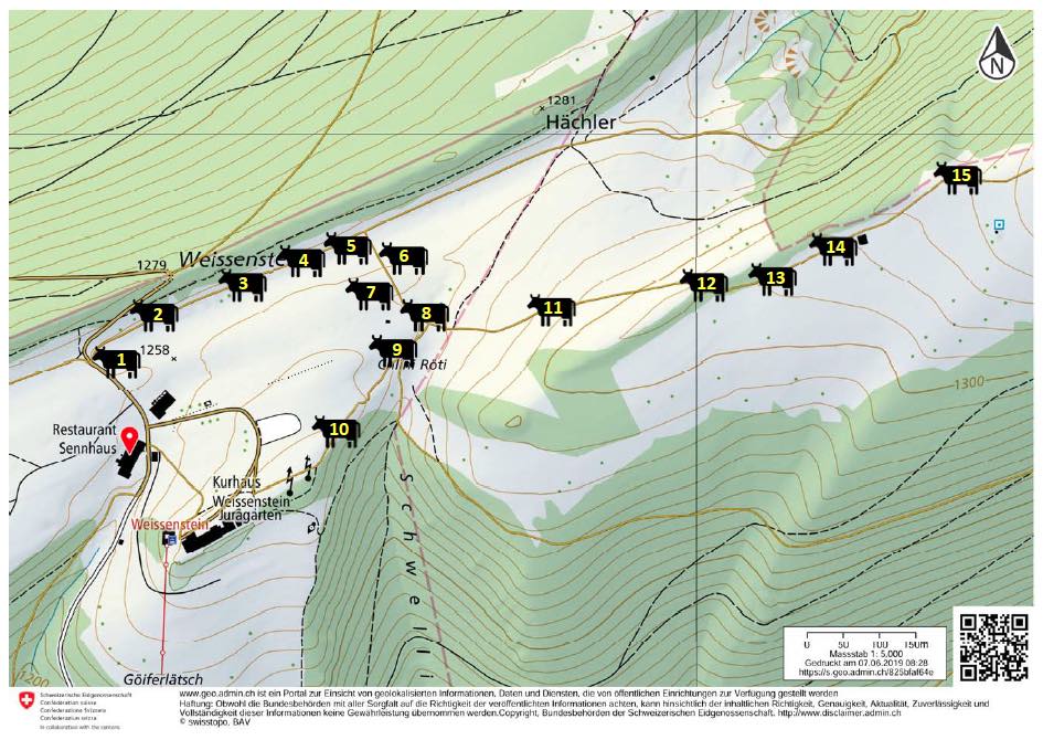 Texte und Bilder vermitteln auf dem Pfad, wie Wanderer und Rindviehherden nebeneinander ohne Konflikte auskommen können. Der 15-teilige Lehrpfad gibt im Weidegebiet Einblick in das Leben, die Instinkte und das Verhalten von Rindern und zeigt auf, wie Konfrontationen vermieden werden können, so die BUL in einer Mitteilung.
