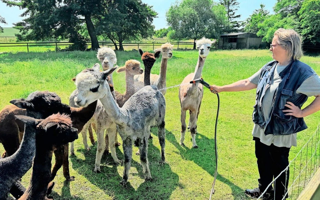 Nicht nur Grossbetriebe prägen die schwedische Landwirtschaft. Mit «Grüessech» begrüsst uns der aus dem bernischen Stettlen ausgewanderte Paul Gerber. Mit seiner Frau Ann Marie hält er Alpakas und verkauft Zuchttiere und Wolle. Insgesamt bewirtschaftet der Nebenerwerbsbetrieb 14 ha landwirtschaftliche Nutzfläche und 300 ha Wald.