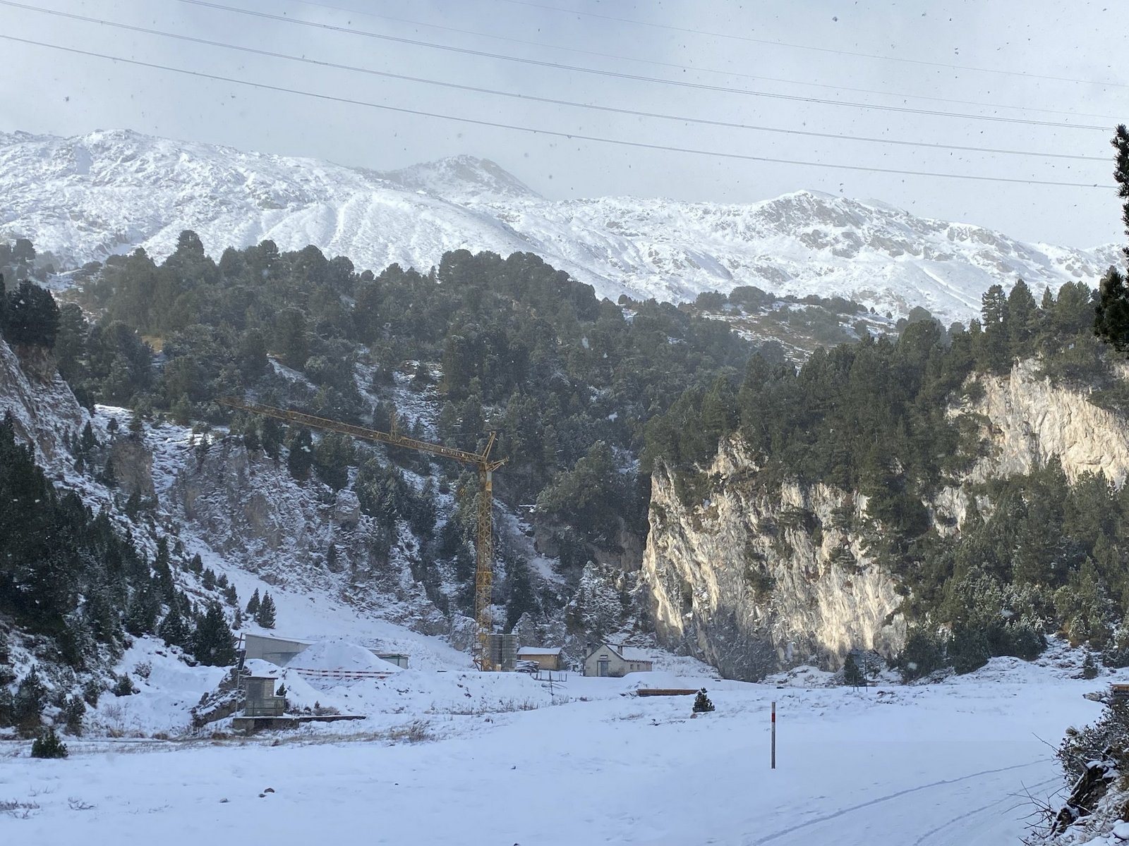 Nachdem Vater und Sohn mir die Eckdaten zum Betrieb erläutert haben, geht es auf 2000 m ü. M. zum Standort der Alp. Ein kräftiger Wind weht, Schnee ist gefallen. Die Temperaturen liegen unter dem Gefrierpunkt. Auf der Lucomagno-Passstrasse fahren wir vorbei an Sumpfflächen und Wäldern voller Arven, deren Spitzen schneebedeckt sind. Wir befinden uns im Bleniotal, wo die Quellen des Brenno sind.[IMG 3]