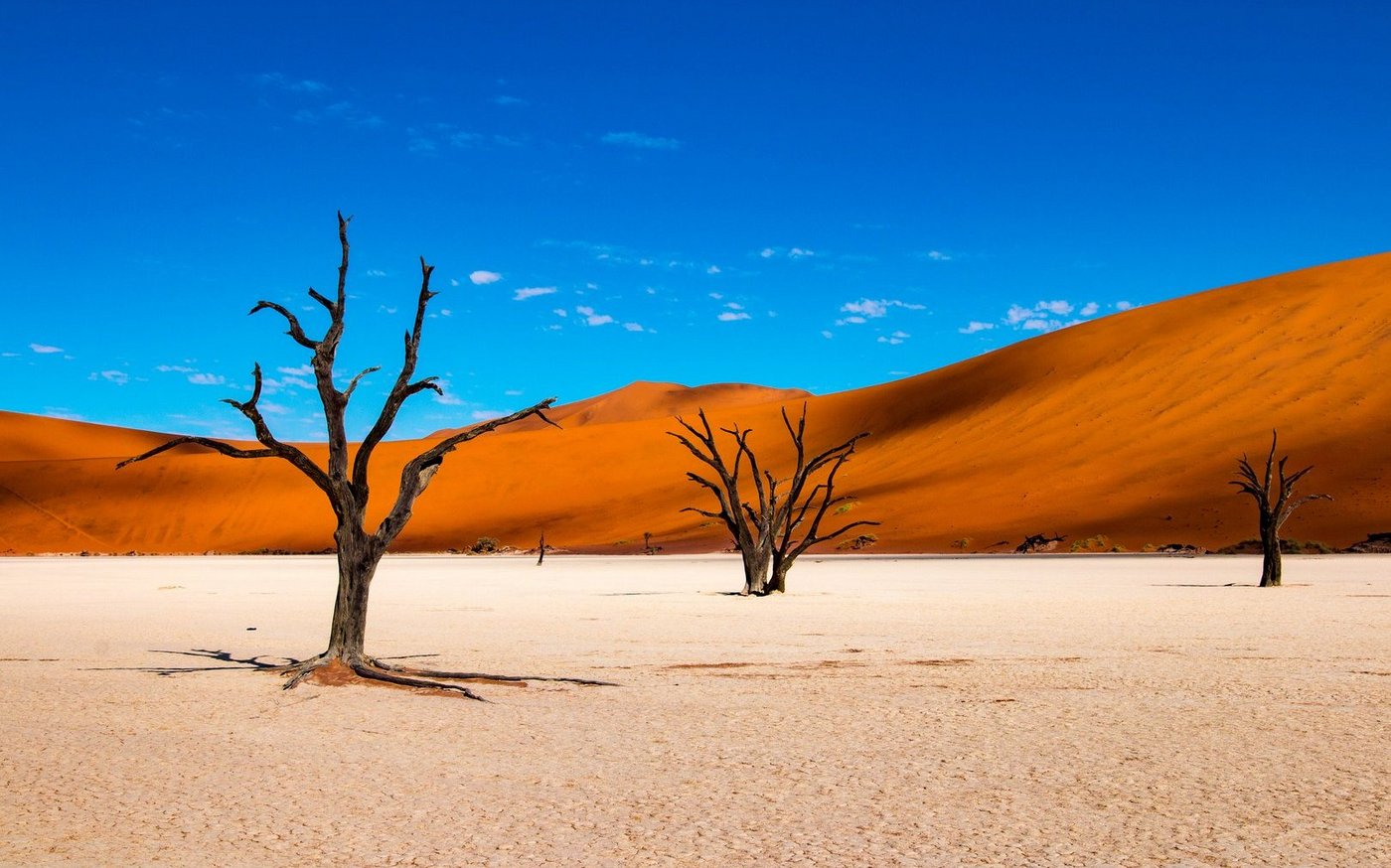 Etwa alle zehn Jahre wiederholt sich das Schauspiel, dass der Tsauchab so viel Wasser führt, dass das sonst trockene Wüstenvlei für wenige Tage zu einem ausgedehnten, aber flachen See inmitten der bis über 300 Meter hohen Dünen wird. Vor etwa 500 Jahren wurde ein solches Vlei von einer Düne abgesperrt. Die Folge war, dass die riesigen Kameldornbäume kein Wasser mehr bekamen und damit langsam abstarben. Die Überreste dieser Bäume kann man heutzutage im Dead Vlei besichtigen – dieses Vlei lässt ein jedes Fotografenherz höherschlagen, da man nicht genug von der Farbmischung der weissen Bodenfläche, der schwarzen Bäume, der roten Dünen und dem blauen Himmel bekommen kann. Rückkehr zur Lodge und Zeit zum Erholen. Am Abend sind Sie zu einem typisch namibischen Barbecue (Braai) eingeladen, um den Tag ausklingen zu lassen.