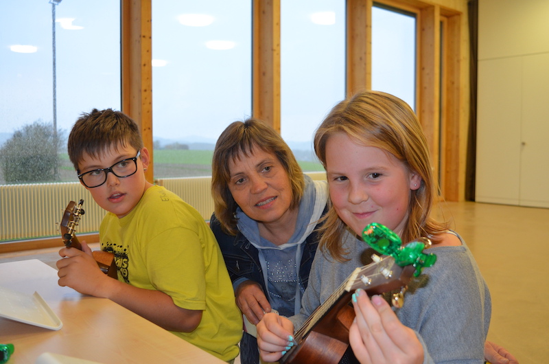 Käthi Vetterli erteilt seit sieben Jahren an der Primarschule Kaltenbach (TG) montags Musikunterricht, sowohl für Klassen als auch in Klein-Gruppen. Bei einem Besuch anfangs November übt und singt sie mit zwei Schülern auf Ukulele und Flöte Weihnachtslieder. Dabei gibt sie präzise Hinweise auf die feinen Nuancen bei den Dur-Klängen, lobt Fortschritte und erinnert die Kinder an den eng gesteckten zeitlichen Rahmen für deren Auftrittsziel vor Weihnachten. "Ich finde die Ukulele ein hervorragendes Instrument, um Kindern die ersten Musikbegriffe näher zu bringen. Vor allem ist es ein bezahlbares Instrument für die Eltern."