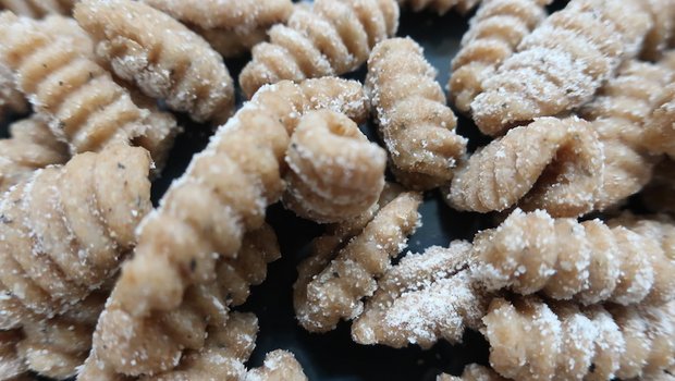 - Darauf achten, dass die einzelnen Gnocchis geleichmässig gross und dick werden, damit alle gleichzeitig al dente gekocht sind. Kochzeit je nach Dicke zirka 2 Minuten.