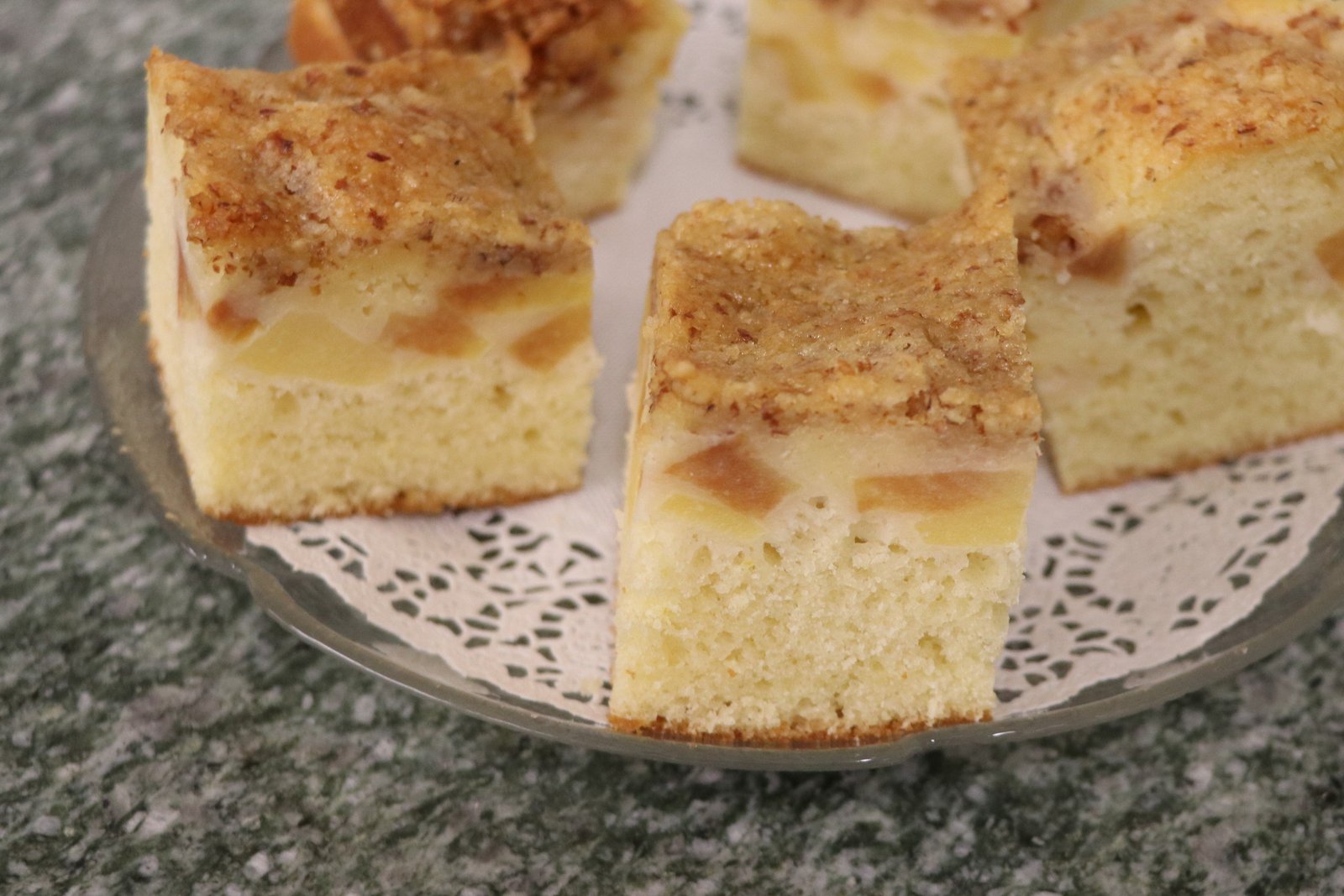 - Teig in Springform verteilen Quitten darauf geben und ca. 30 Minuten bei 180° C backen, bis der Kuchen leicht braun ist