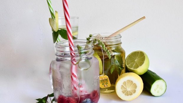1. Wasser in einen Glaskrug geben. Hibiskusblüten beigeben und umrühren.