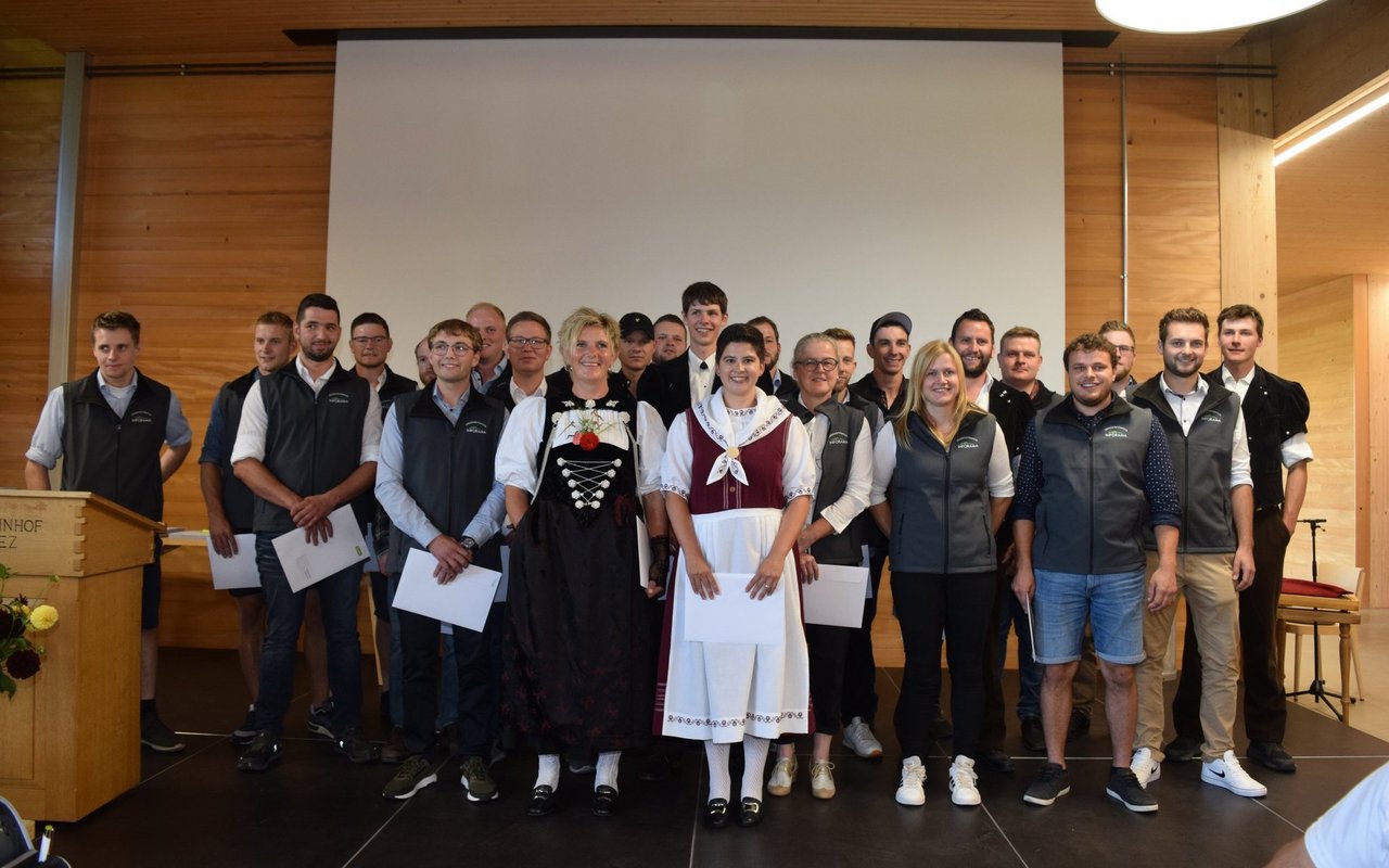 [IMG 2] Anita Gstöhl führt mit ihrem Mann und den zwei Kindern einen 50 ha grossen Biobetrieb mit 60 Milchkühen im Fürstentum Liechtenstein. Sie bezeichnete die Ausbildung zur Dipl. Bäuerin als «Chance, auf dem eigenen Betrieb nochmal genau hinzuschauen, ob man auf Kurs ist oder etwas ändern sollte». Die Schule, der Austausch mit den Schulkolleginnen und die Vertiefung von Wissen, gerade in der Buchhaltung, waren für sie enorm wertvoll. «Wenn man nie rauskommt, steigt die Gefahr von Betriebsblindheit», ist sie überzeugt.