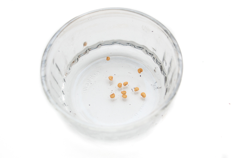 Ein Blitztest, um die Keimfähigkeit zu bestimmen, ist der Schwimmtest. Ein paar Samen in ein Gefäss mit Wasser geben.