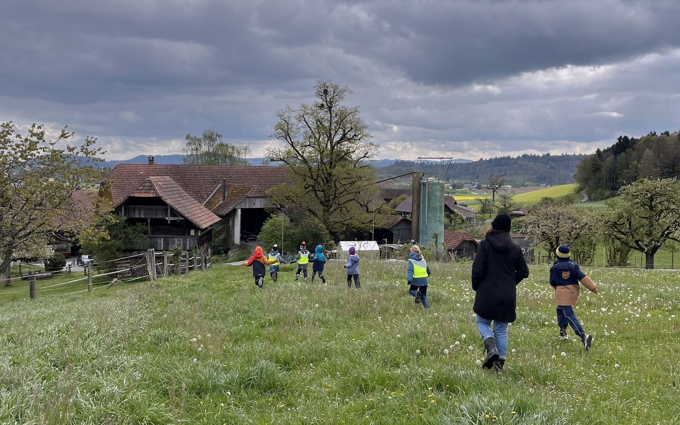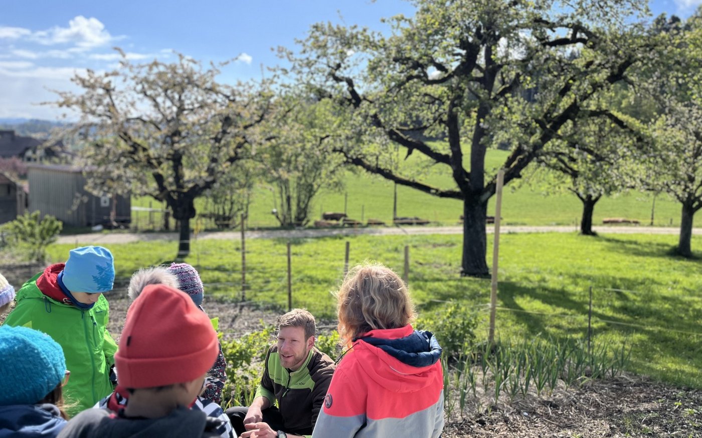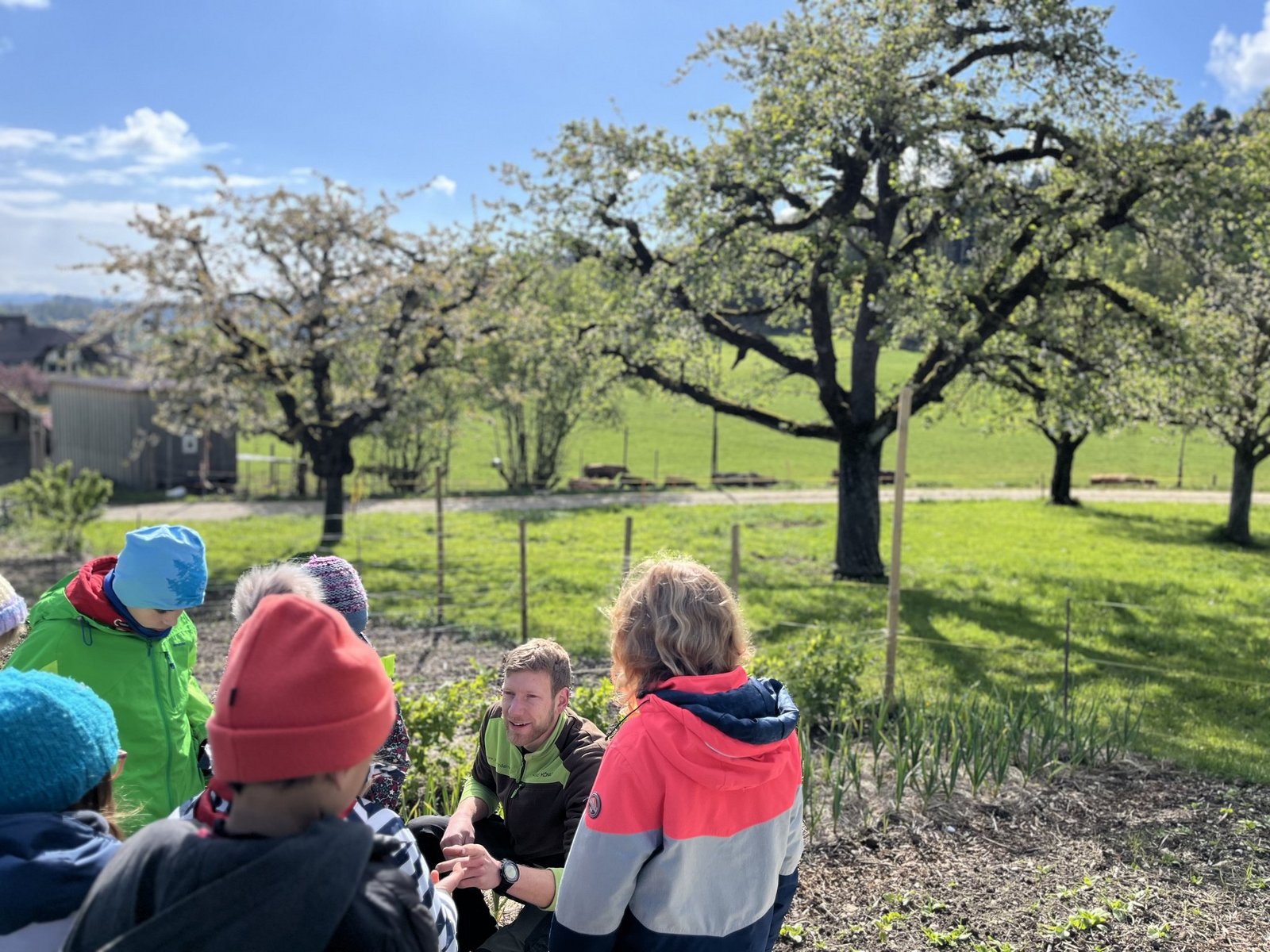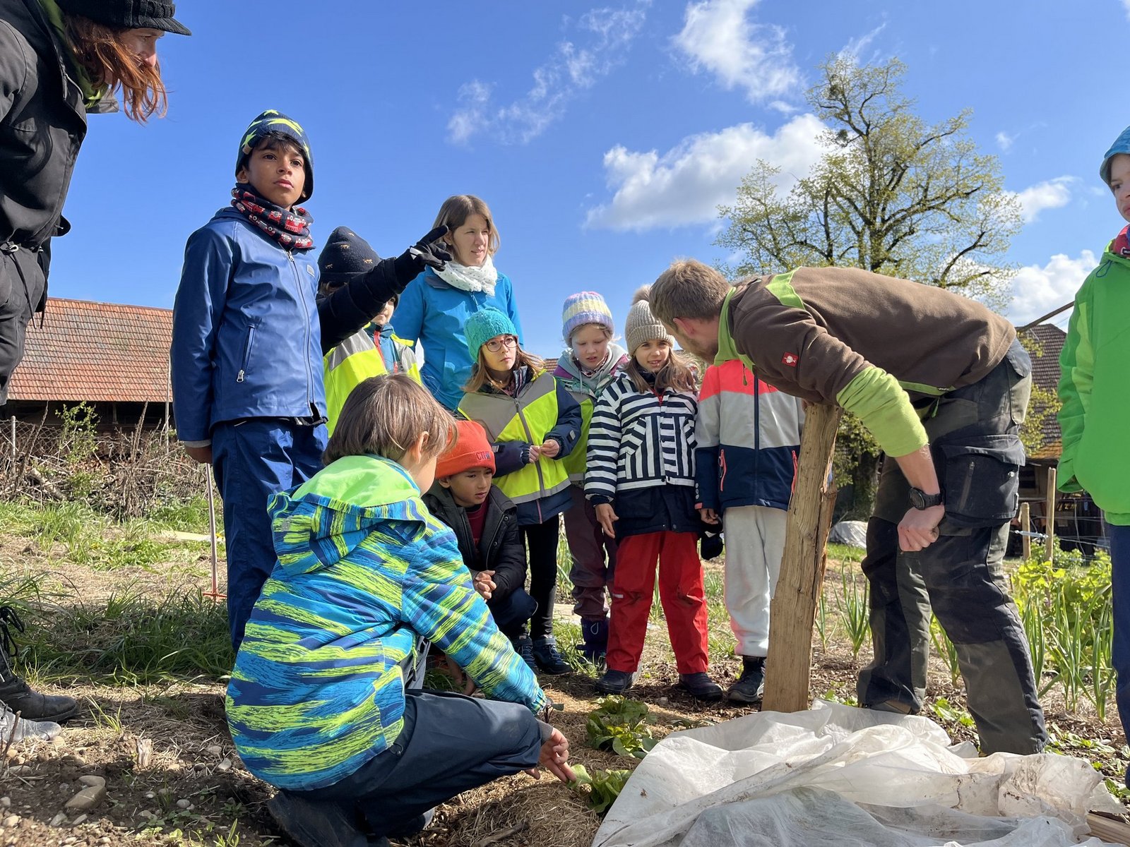 «Sie sollten jeden Moment da sein», Junglandwirt Thomas König blickt hinunter auf die Strasse, auf der in wenigen Augenblicken die Klasse 2c daherkommen soll. Alle stehen bereit. Neben Thomas König machen auch seine Eltern, Ruth und Hans König die letzten Vorbereitungen, während die Hündin Leika ihre Slalomkünste zwischen den Plastikzaunschwirren zeigt. Auch die zwei Enkelkinder, Thomas Königs Neffen, freuen sich auf…