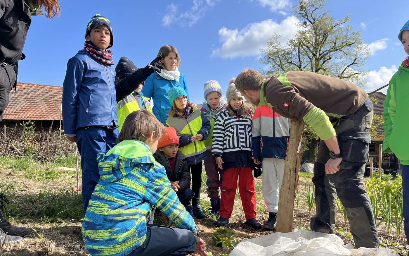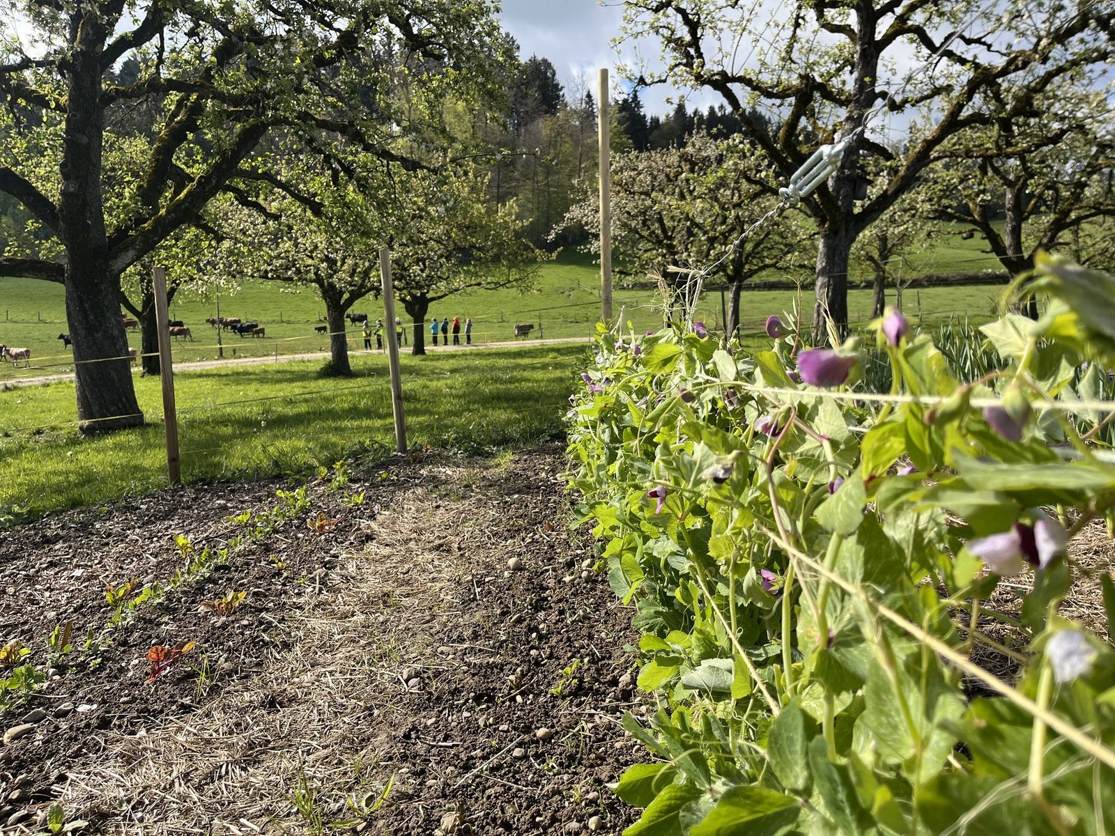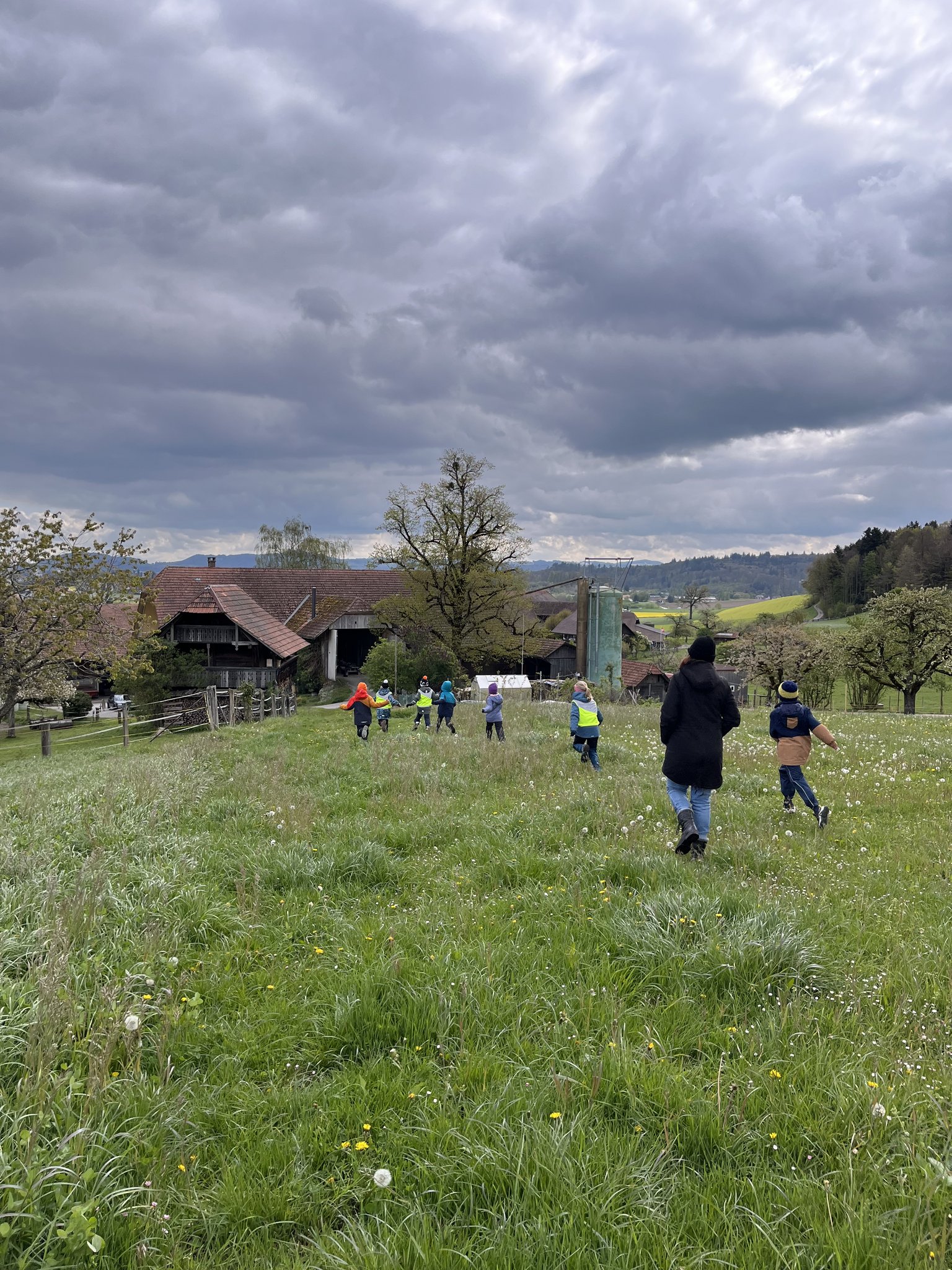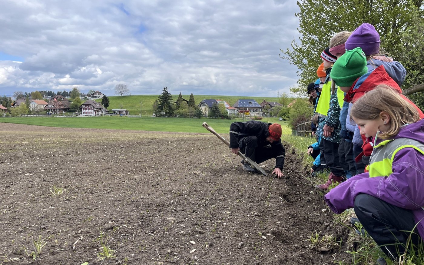 «Sie sollten jeden Moment da sein», Junglandwirt Thomas König blickt hinunter auf die Strasse, auf der in wenigen Augenblicken die Klasse 2c daherkommen soll. Alle stehen bereit. Neben Thomas König machen auch seine Eltern, Ruth und Hans König die letzten Vorbereitungen, während die Hündin Leika ihre Slalomkünste zwischen den Plastikzaunschwirren zeigt. Auch die zwei Enkelkinder, Thomas Königs Neffen, freuen sich auf…