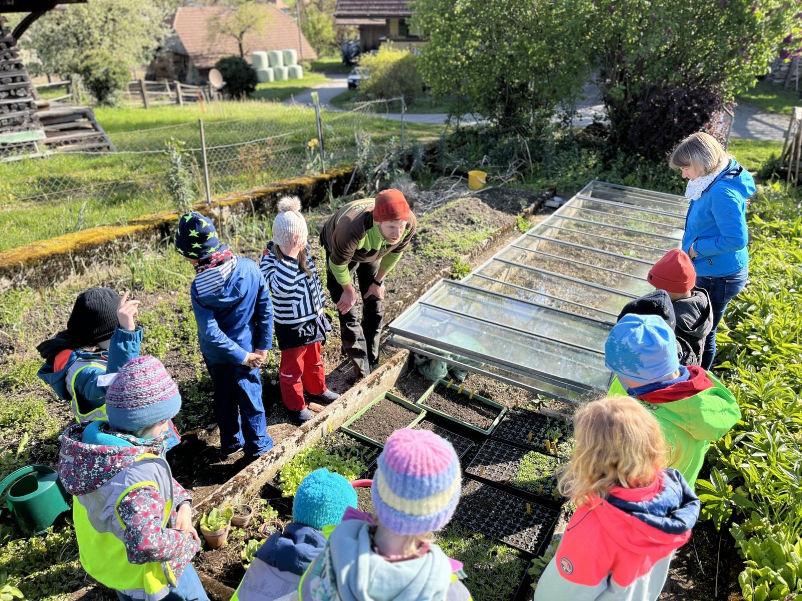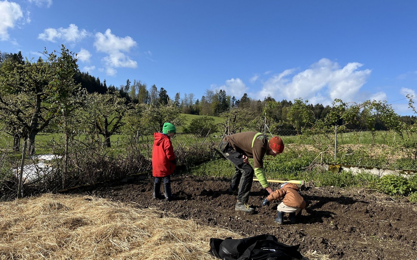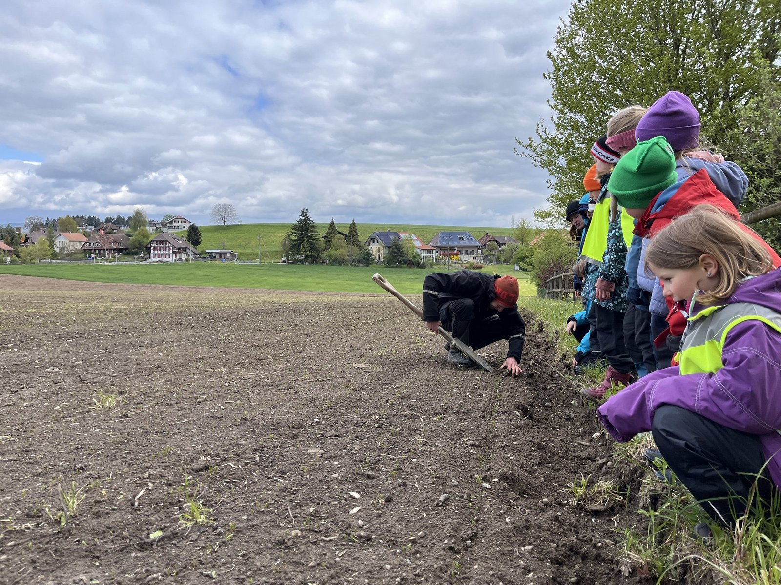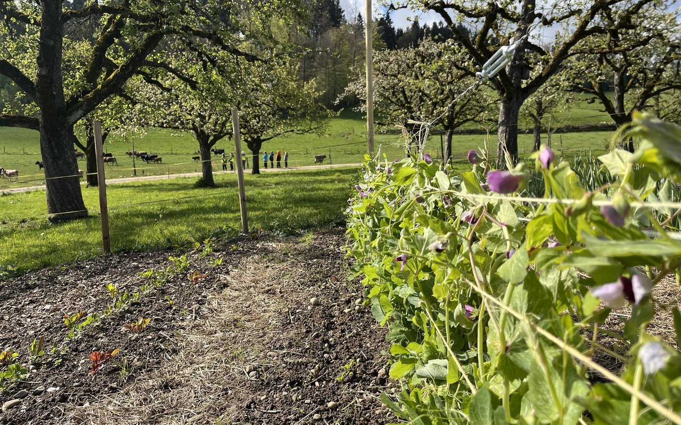 «Sie sollten jeden Moment da sein», Junglandwirt Thomas König blickt hinunter auf die Strasse, auf der in wenigen Augenblicken die Klasse 2c daherkommen soll. Alle stehen bereit. Neben Thomas König machen auch seine Eltern, Ruth und Hans König die letzten Vorbereitungen, während die Hündin Leika ihre Slalomkünste zwischen den Plastikzaunschwirren zeigt. Auch die zwei Enkelkinder, Thomas Königs Neffen, freuen sich auf…