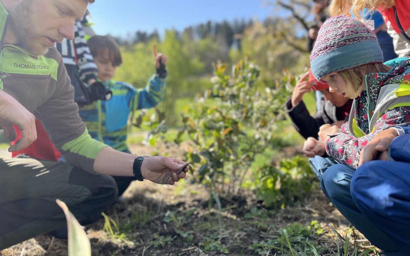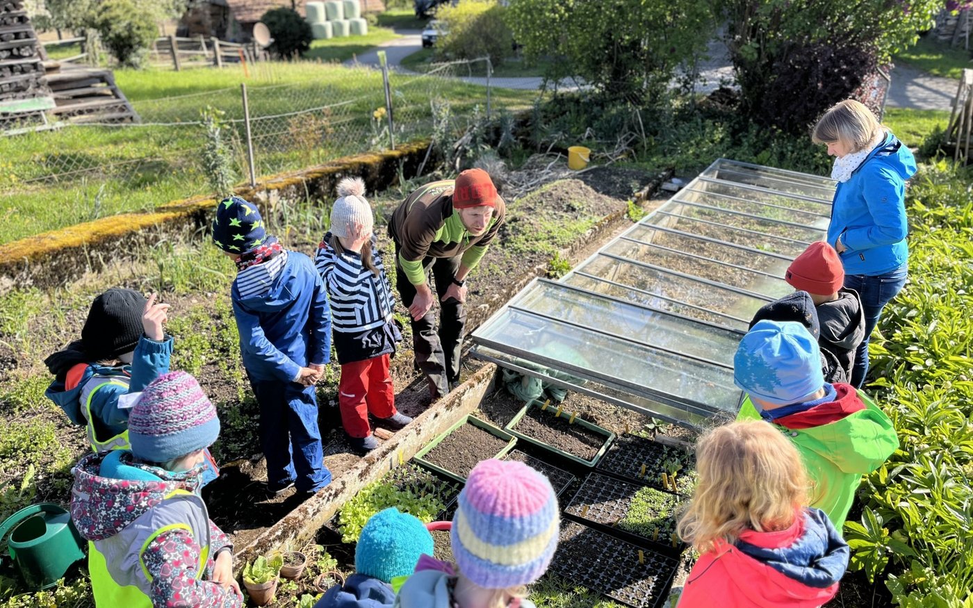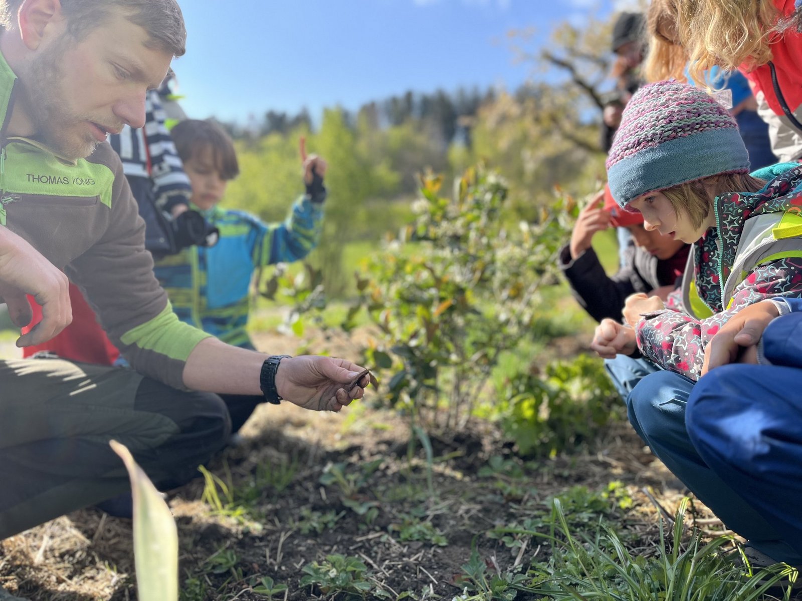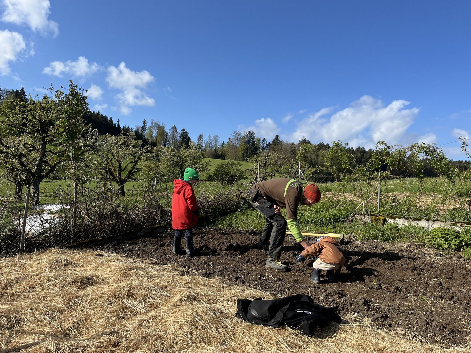«Sie sollten jeden Moment da sein», Junglandwirt Thomas König blickt hinunter auf die Strasse, auf der in wenigen Augenblicken die Klasse 2c daherkommen soll. Alle stehen bereit. Neben Thomas König machen auch seine Eltern, Ruth und Hans König die letzten Vorbereitungen, während die Hündin Leika ihre Slalomkünste zwischen den Plastikzaunschwirren zeigt. Auch die zwei Enkelkinder, Thomas Königs Neffen, freuen sich auf…