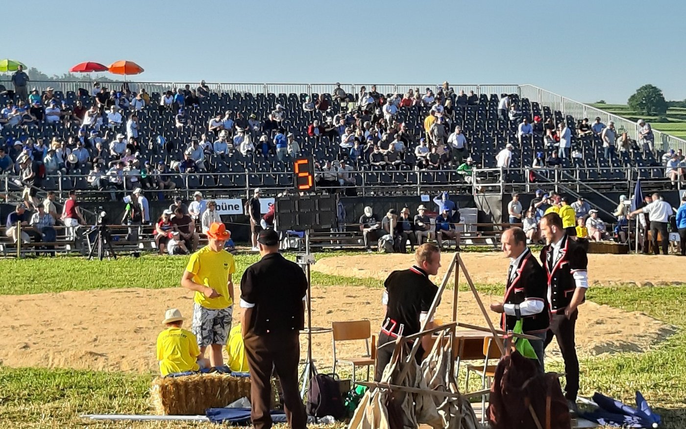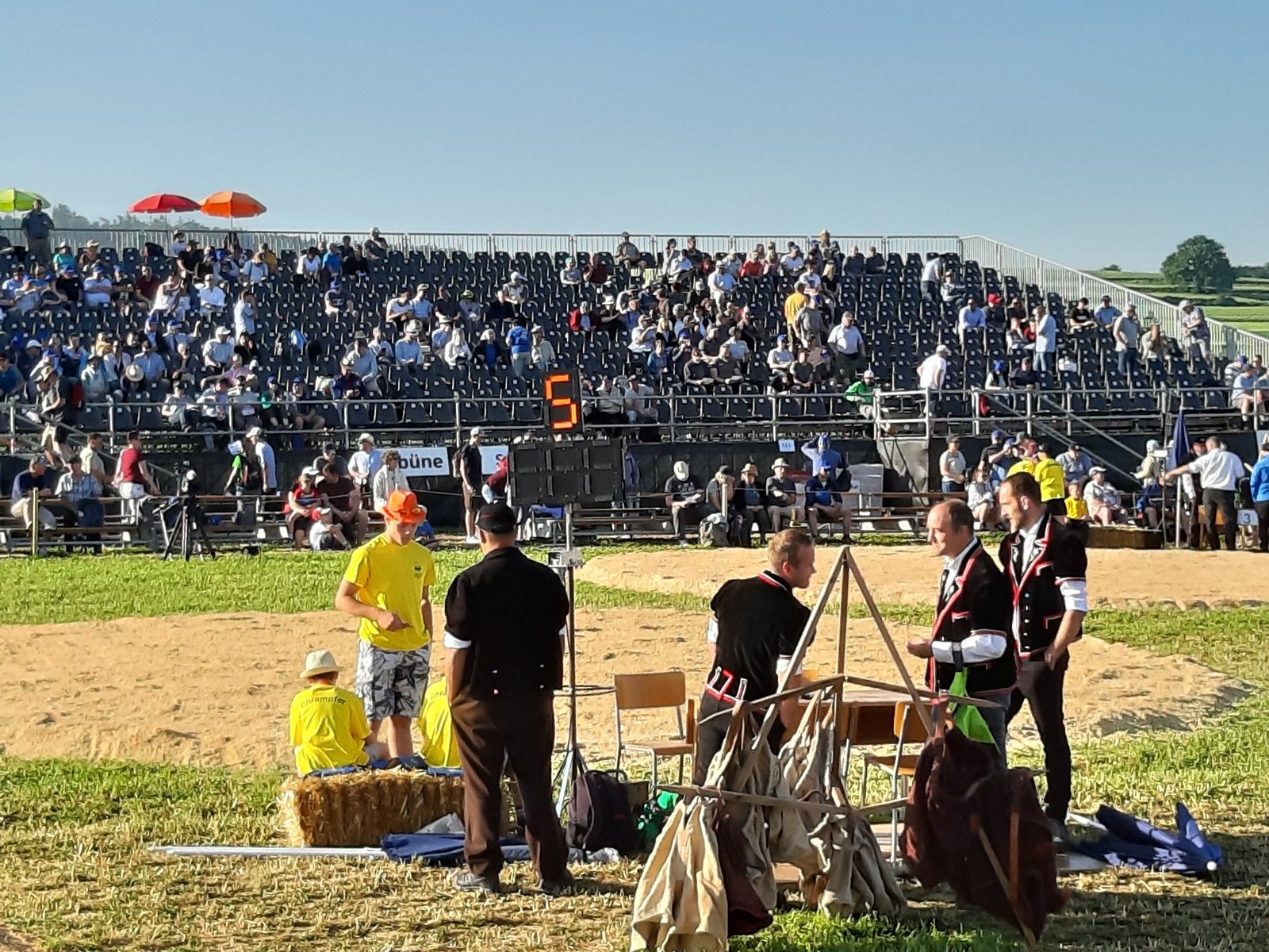 Der Schlussgang ist vorbei. Die Schlussgang-Gegner Curdin Orlik und Kilian von Weissenfluh stellen. Aus diesem Grund teilen sich nun mehrere Schwinger den Festsieg.