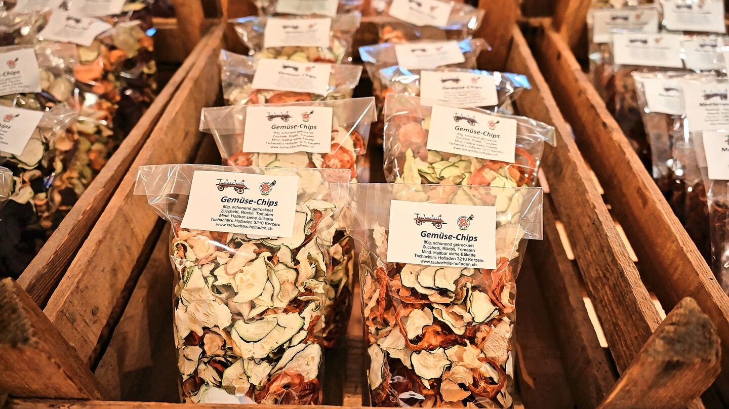 Der Besuch bei Yvonne Tschachtli aus Kerzers ist ein Härtetest für die Fotokamera. Denn drinnen ist es schwülwarm, während draussen ein kalter Wind Regentropfen um die Häuser peitscht. Yvonne Tschachtli trocknet Obst und Gemüse in grossen Mengen und kocht Sirup und Fruchtaufstriche. Dazu hat sie auf dem Gelände des Biogemüsehofs ihres Mannes Jakob Tschachtli einen Verarbeitungsraum im Stile einer Industrieküche…
