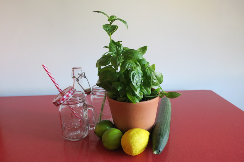 1. Gurke und Basilikum waschen.