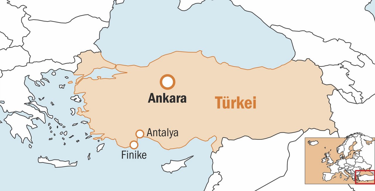 Entlang der lykischen Küste erstreckt sich das gigantische Taurusgebirge bis nach Finike. Die Hafenstadt liegt etwa 110 km südwestlich vom touristisch geprägten Antalya entfernt und ist eines der wichtigsten Agrargebiete der türkischen Mittelmeerküste – «denn hier scheint an 340 Tagen die Sonne», begründet Ali Koyak, unser Reiseleiter auf der Leserreise durch die Südtürkei. Aber auch die fruchtbaren Böden in dieser Region tragen dazu bei.