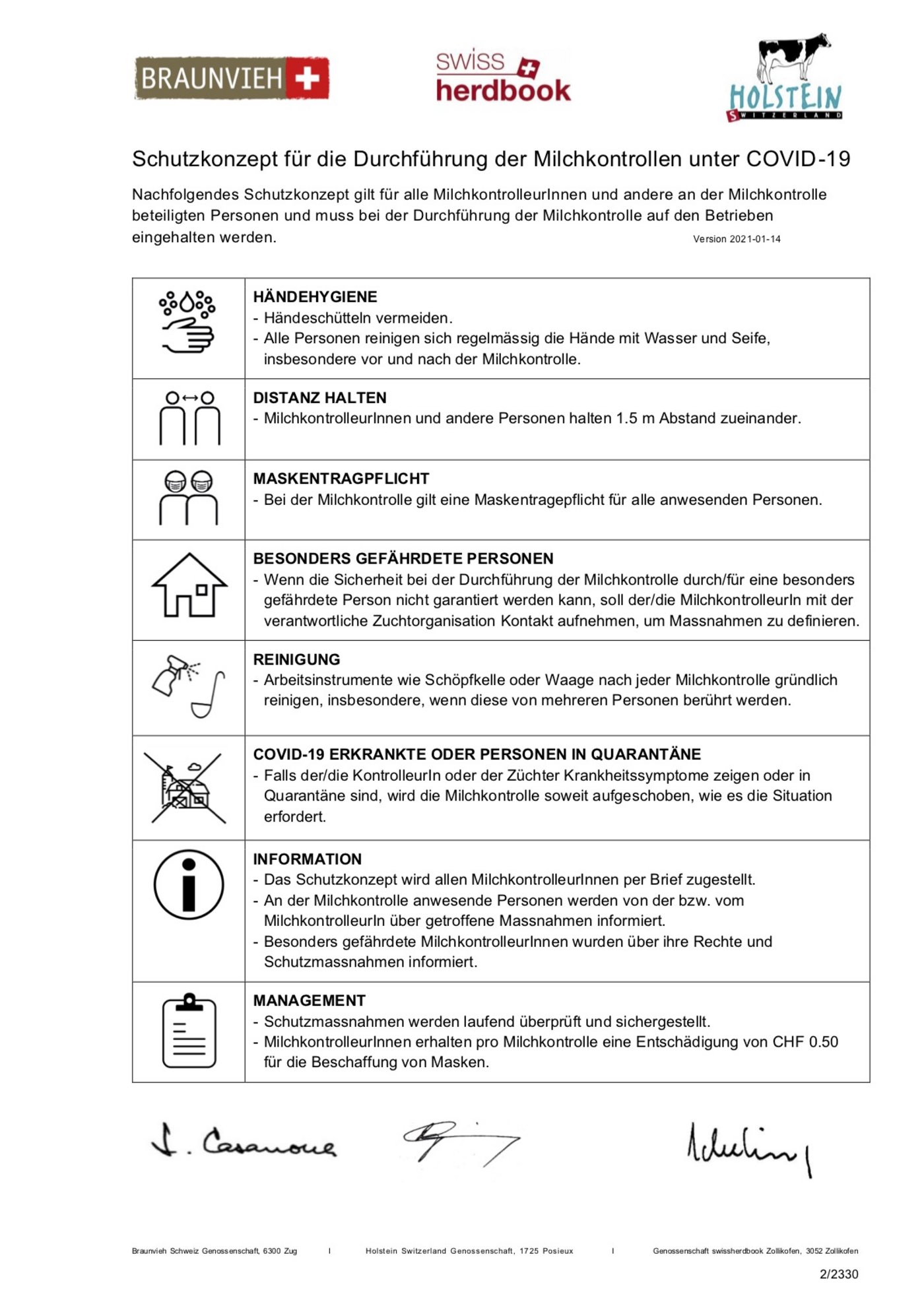 Wenn die Sicherheit bei der Milchkontrolle für eine besonders gefährdete Person nicht gewährleistet ist, soll der Milchkontrolleur mit der Zuchtorganisation Kontakt aufnehmen, heisst es weiter. [IMG 2][IMG 2]