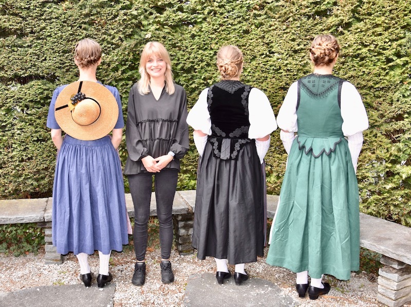 Ausgestattet wurden Lisa Dössegger, in der Berner Werktagstracht, und Eleonora Massini, in der Gotthelftracht, von der Trachtenstube Bern. Esther Thalmann trägt den Weinländer Arbeitsrock, ein Geschenk ihrer Tante Rosmarie.