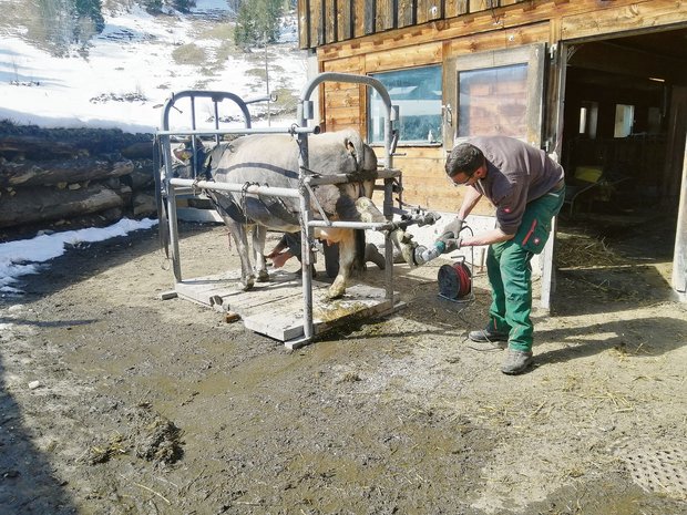 Kaum hat sich der neue Stier auf Julias Praktikumsbetrieb eingelebt, darf er schon auf die Alp