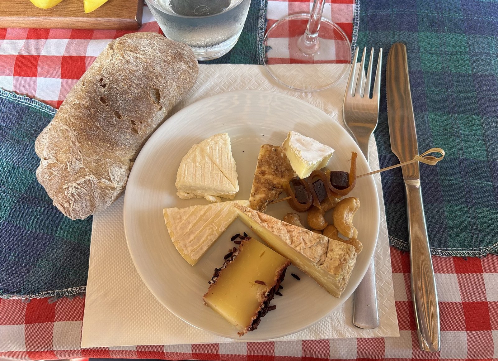 Mit einem lokalen Wein stossen wir auf die bisherige Reise an und lassen uns die verschiedenen Käsesorten schmecken. Der Schweizer Koch erzählt uns, wie er vor 20 Jahren durch seine thailändische Frau nach Thailand ausgewandert sei und nun mehrere Restaurants und Hotels mit örtlichem Ziegenkäse versorge. Ausserdem importiert er Käse aus der Schweiz, wie zum Beispiel Emmentaler.