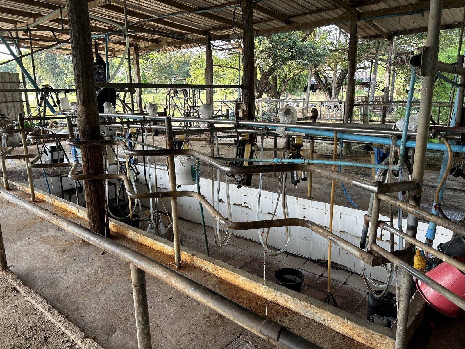 Nach der Stärkung führt uns ein junger Mann durch den Laufhof hinter dem Wohnhaus. Die Kühe liegen gemütlich in ihren Boxen, die mit Sand eingestreut sind, damit es nicht zu heiss wird, bei einer Aussentemperatur von 30 Grad. Die Frage, wo denn die Milch gelagert werde, kommt auf, als kein Tank neben dem Melkstand zu finden ist. «Der Milchlastwagen kommt, schliesst an, wartet, bis wir fertig gemolken habe,n und fährt weiter», erzählt uns der junge Mann mit einem herzlichen Lächeln. Das Staunen der Teilnehmenden ist gross.