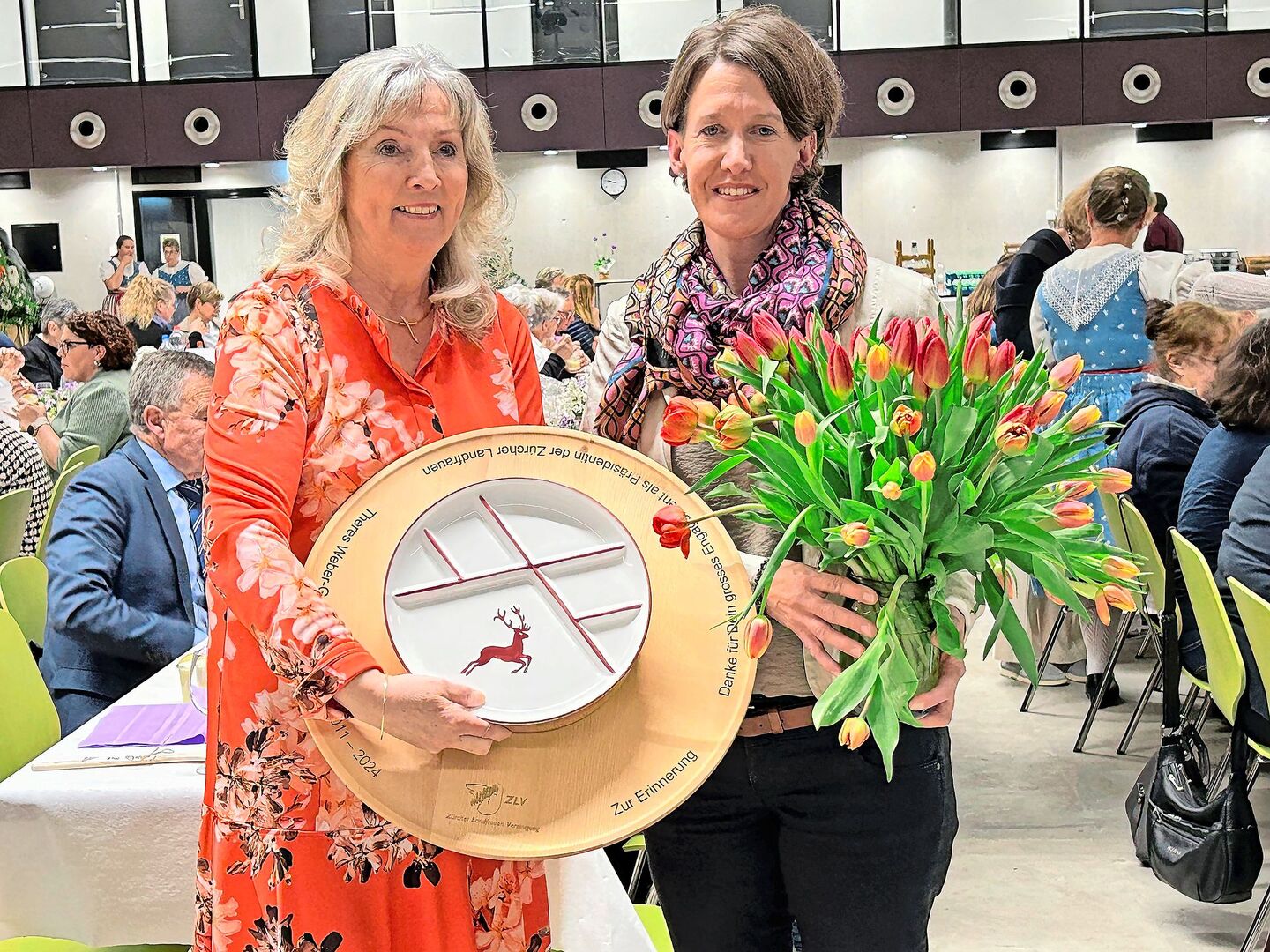 Es war eine würdige Delegiertenversammlung der Zürcher Landfrauenvereinigung (ZLV). Ausgerichtet hatte sie Fränzi Furrer, Präsidentin des Bezirksvereins Pfäffikon, mit ihrem hochmotivierten Team (siehe Bild rechts). [IMG 2] Üppige Apfelblüten-Bouquets sorgten für Frühlingsgefühle, was sich mit Veilchen, Hauswurz und Teelichtern in Einmachgläsern an den Tischreihen fortsetzte. Jeder Sitzplatz war mit einem…