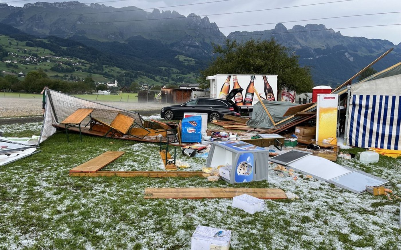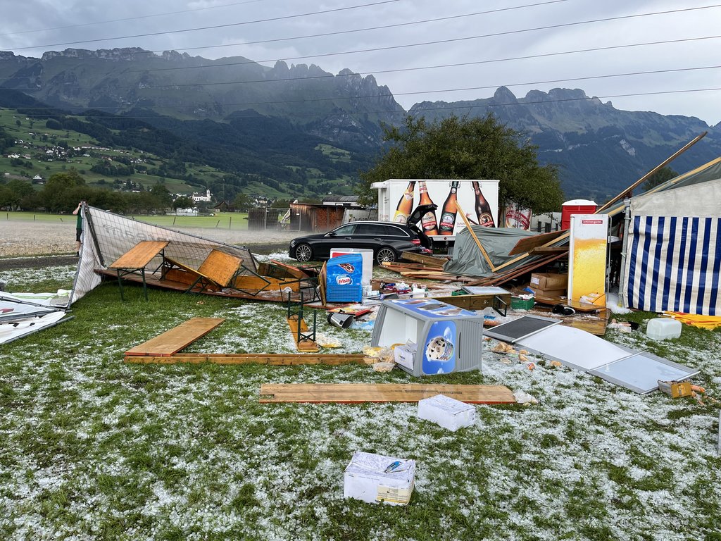 Gestern, kurz vor 15 Uhr, zog ein heftiges Gewitter über das Festgelände des Seilziehfestes in Grabs. Diverse Gegenstände wirbelte es in der Luft herum. Ein Festzelt stürzte ein und ein Sachentransportanhänger kippte. Dadurch wurden mindestens fünf Personen verletzt. Ein 44-jähriger Mann musste mit unbestimmten Verletzungen durch die AP3-Luftrettung ins Spital geflogen werden. Eine 70-jährige Frau musste mit eher leichten Verletzungen mit dem Rettungswagen ins Spital überführt werden. Die anderen verletzten Personen konnten vor Ort medizinisch versorgt werden oder suchten selbständig einen Arzt auf.