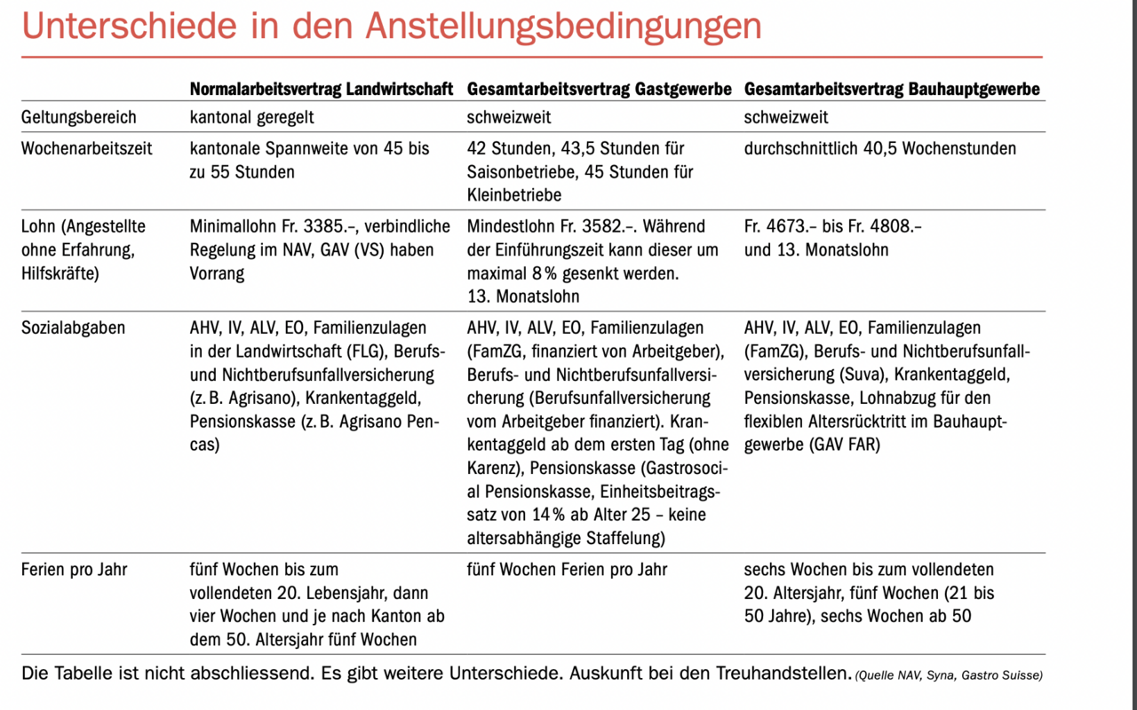 [REL 1]Event-Gastronomie oder ein Baugeschäft nebenher kann lukrativ sein, sofern die Angestellten richtig versichert sind. Sowohl in der Gastro- als auch in der Baubranche gelten schweizweit Gesamtarbeitsverträge (GAV), die sich punkto Arbeitszeiten, Entlöhnung und Sozialversicherungsschutz von den kantonal geltenden Normalarbeitsverträgen (NAV) für die Landwirtschaft unterscheiden. Besenbeiz mit Gastrocharme «Arb…