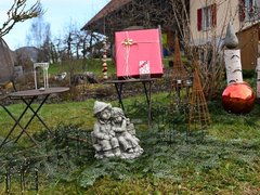 Weihnachten bedeutet leuchtende Augen, strahlende Gesichter und zufriedene Menschen. Auf dem Wiehnachtsmärt des Seblenhofs von Beat Fankhauser und Priska Schmid im solothurnischen Holderbank, der jedes Jahr am letzten Samstag vor Weihnachten stattfindet, kommt dazu noch eine Dekoration, die ihresgleichen sucht. Der Hof wird jedes Jahr mit zahlreichen kleinen und liebevoll gestalteten Details geschmückt. Beim Betreten des Hofgeländes sticht die Weihnachtskrippe sofort ins Auge. Der Blick wandert weiter und bleibt an der Fassade des Wohnhauses hängen. Da entlang schlängelt sich eine kleine Wichtelwelt. Nicht weniger als 48 Wichtel aus Gips hat die Hausherrin dieses Jahr dafür gegossen und handbemalt. Überall verbreiteten Lichterketten eine warme Atmosphäre.
