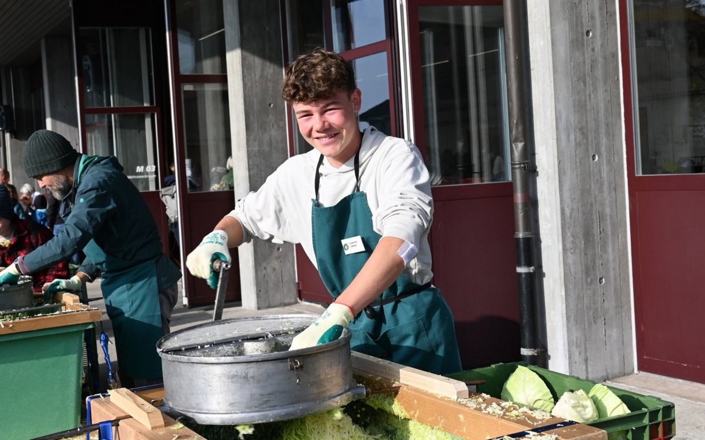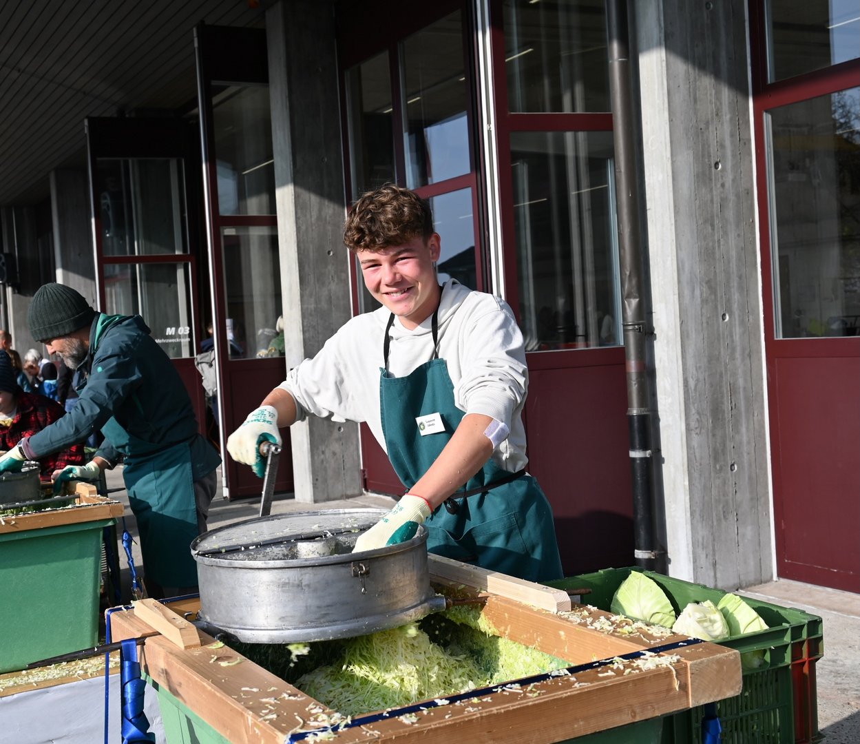«Ja, ich mag Sauerkraut.» Laurent Jakobi strahlt. Er verrichtet an der Chabishoblete des Bildungszentrums Wallierhof in Riedholz anstrengende Arbeit und hobelt die grossen Chabisköpfe. Bereits zum 25. Mal fand der Anlass am Wochenende vom 19. und 20. Oktober statt. Laurent Jakobi kennt den Anlass gut. Er war schon als Kind mit dabei. Es gebe einige Helferinnen und Helfer, deren Nachwuchs bereits als Kinder vor Ort…