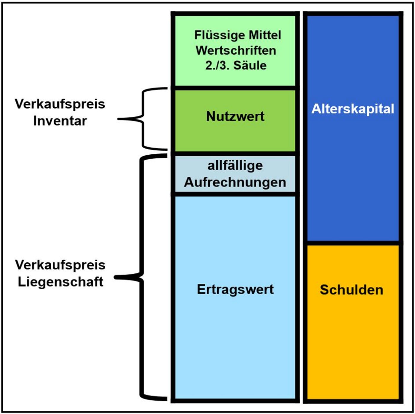 Die Hofübergabe zum Schuldenbetrag führt dazu, dass der Betriebsverkauf für den abtretenden Bewirtschafter kein Alterskapital abwirft. Somit bleibt für das abtretende Betriebsleiterpaar bei der Hofübergabe nur der Verkaufserlös des Inventars als Alterskapital übrig.