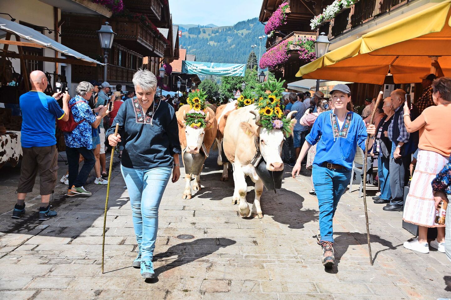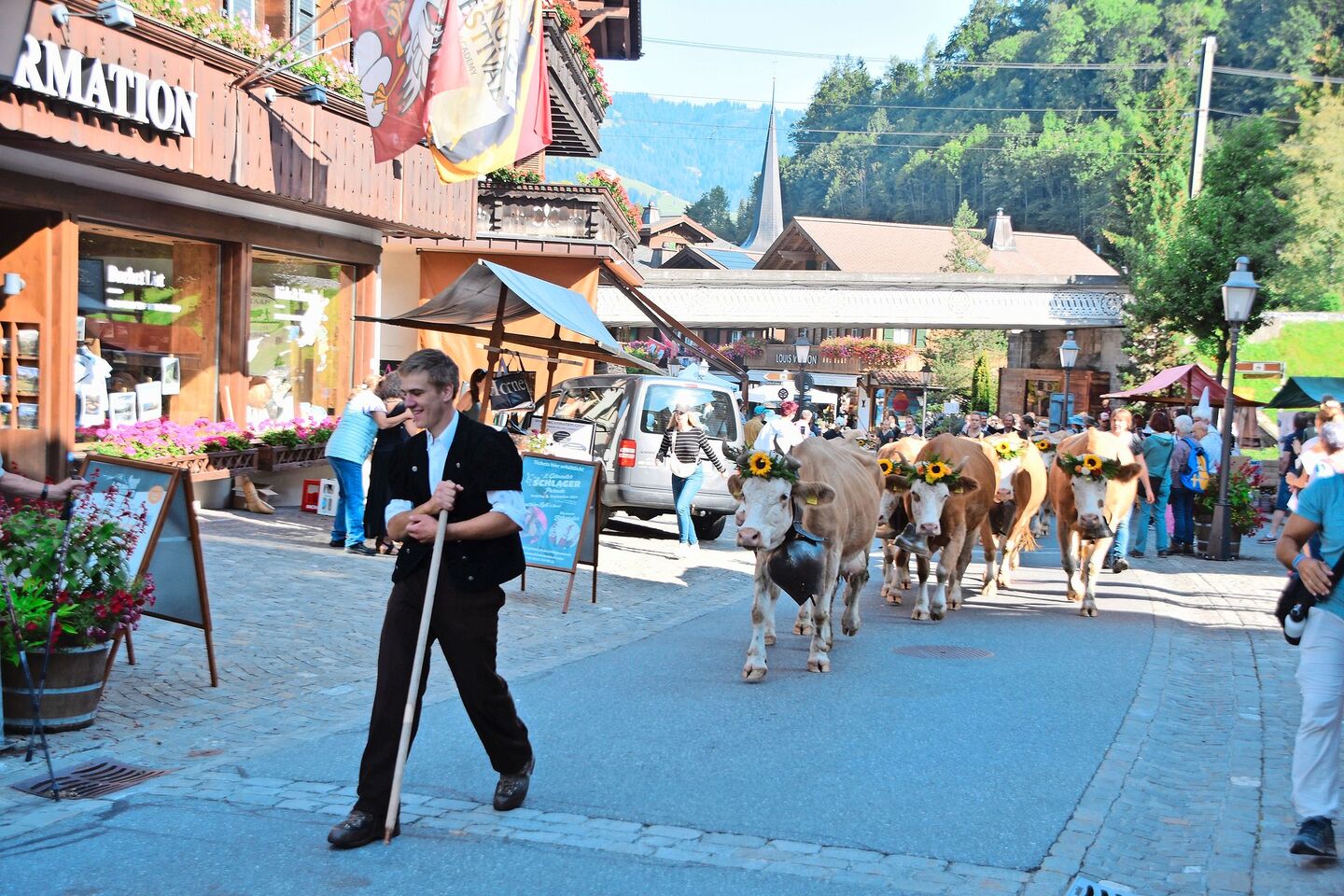 Für einmal standen im Nobelort Gstaad BE nicht die Schönen und Reichen im Mittelpunkt, sondern die Bauern mit ihren Kühen. Am Samstag, 31. August, brachten an der Gstaad-Züglete mehrere Familien ihre Viehherden von der Alp zurück ins Tal und durchliefen dabei die Stadt-Promenade des Ortes. Zu Hunderten standen die Schaulustigen am Strassenrand Spalier – manchmal gab es für Kühe und Bauern fast kein Durchkommen mehr.…