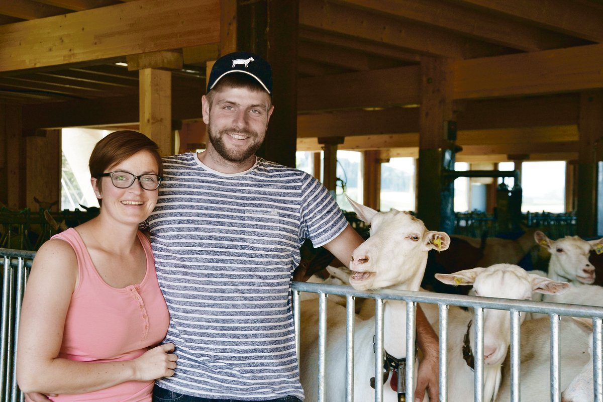 Im Stall bimmelt es, dass die Ohren läuten. Die 150 Milchziegen und 50 Jungtiere tragen alle ein Glöckchen. Die weissen Saanen und Gemsfarbene Gebirgsziegen stehen vor dem Futtertisch und fressen Heu, schauen aber sofort auf, als die Stalltür aufgeht. Neugierig kommen sie auf die Besucher zu und stehen mit den Vorderbeinen auf das Gitter. "Ziegen sind viel aktiver als Kühe", sagt Michel Brünisholz und krault eine…