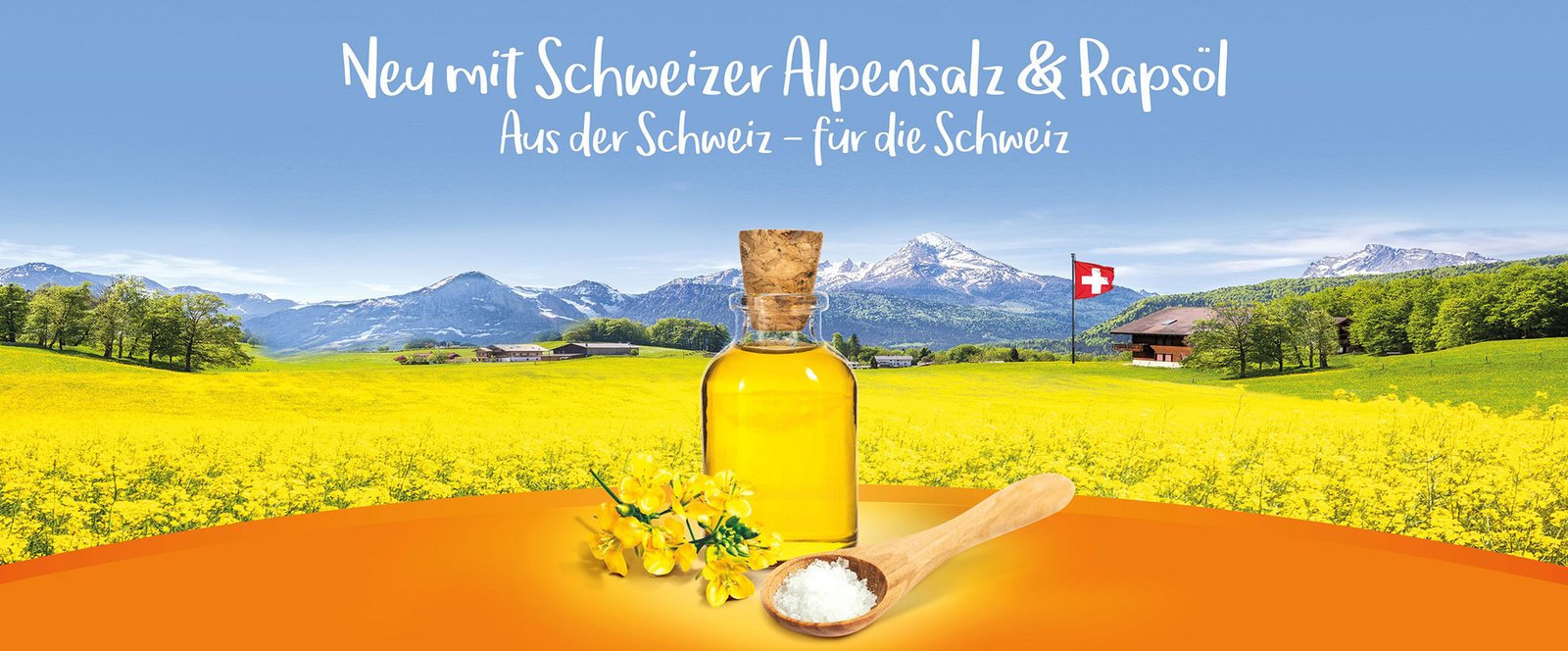 Dem Schweizer Chipshersteller aus Spreitenbach AG ist bei ihrer Werbekampagne ein Fehler unterlaufen, wie am vergangenen Donnerstag in einer Mitteilung auf 20min.ch berichtet wurde. Ein idyllisches Bild eines in in einem prachtvollen gelb blühenden Rapsölfeldes sowie ein klischeehafter Schweizer Berg sollten für die neuen Zutaten in der Packung, Rapsöl und Alpensalz mit Schweizer Herkunft, werben.