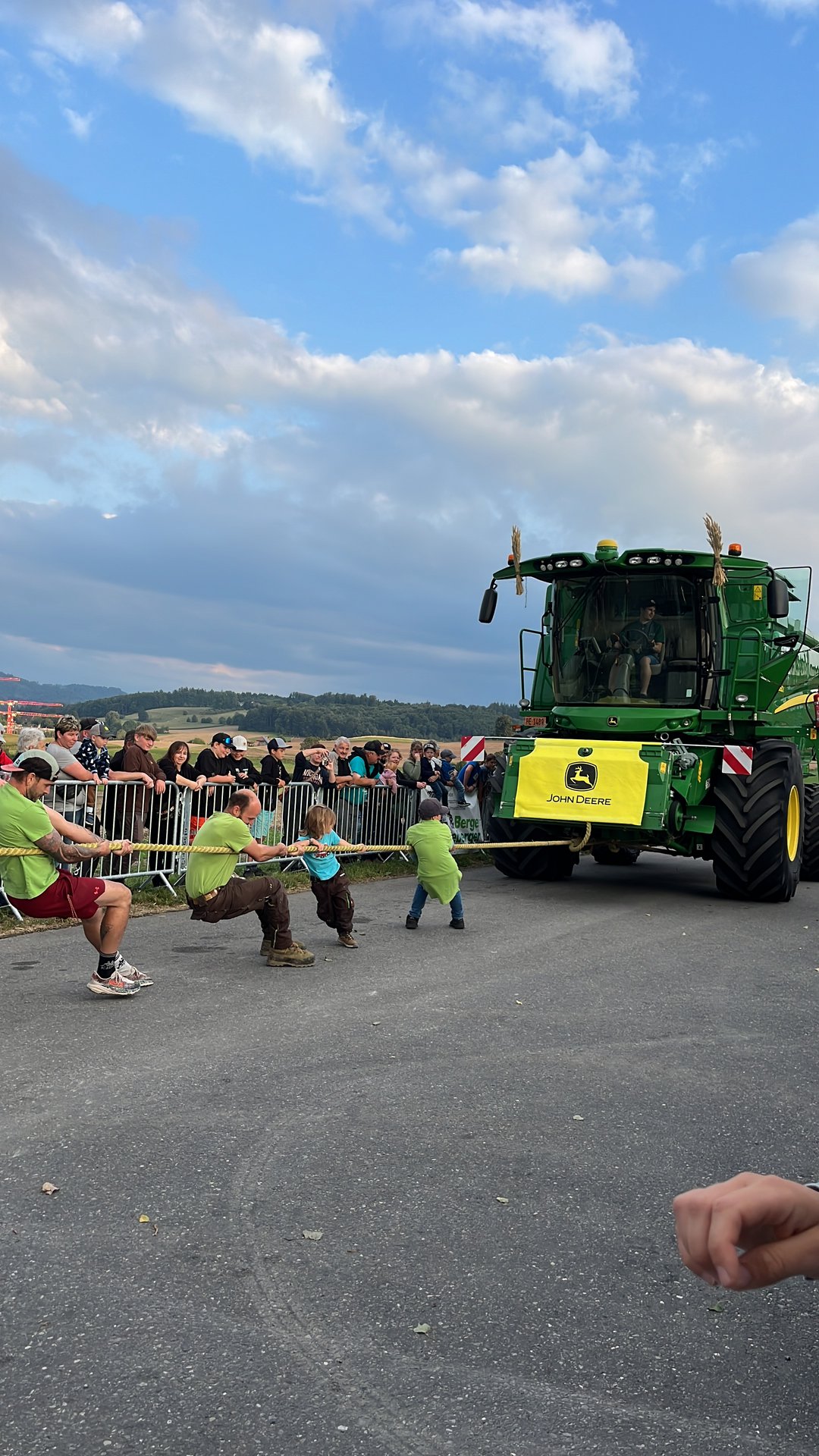 Die einberechneten Parkplätze reichten nicht aus, um alle Besucher und Besucherinnen einzuweisen, die am Freitag, 22. August, an den etwas speziellen Anlass wollten. Zum viertem Mal hat das Lohnunternehmen Schneeberger und Berger in Oberbottigen zum Mähdrescher ziehen eingeladen − und die Organisatoren, die normalerweise Getreide annehmen, Kulturen säen, Landmaschinen reparieren und Gülle ausbringen, wurden überrennt.