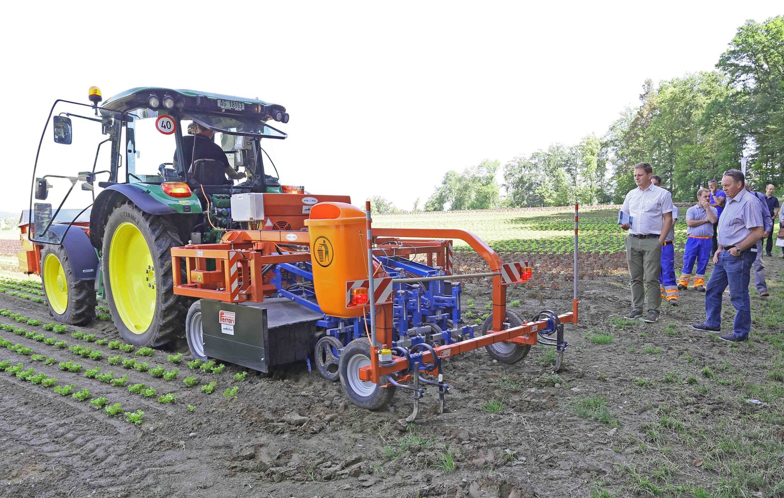 An einer Medienorientierung am Freitag gab es in Theorie und Praxis einen Überblick zum Stand der Dinge. Die Precision-Farming-Technologie trägt massgeblich zur ressourcenschonenden Bewirtschaftung bei: Der Einsatz von Pflanzenschutzmitteln (PSM) beispielsweise lässt sich durch präzise Dosierung aus der Luft deutlich verringern. Ganz ohne PSM kommt der Hackroboter aus, er beseitigt das Unkraut zwischen den Reihen der Kulturen mechanisch. Als einer der ersten Kantone hat der Aargau die landwirtschaftlichen Nutzflächen digital erfasst. Über die Web-Applikation agriGIS erfolgt der Datenaustausch vollständig elektronisch. Den Betrieben ermöglicht dies eine einfache Flächendeklaration, für den Kanton bildet das System die Grundlage zur Berechnung der Direktzahlungen.