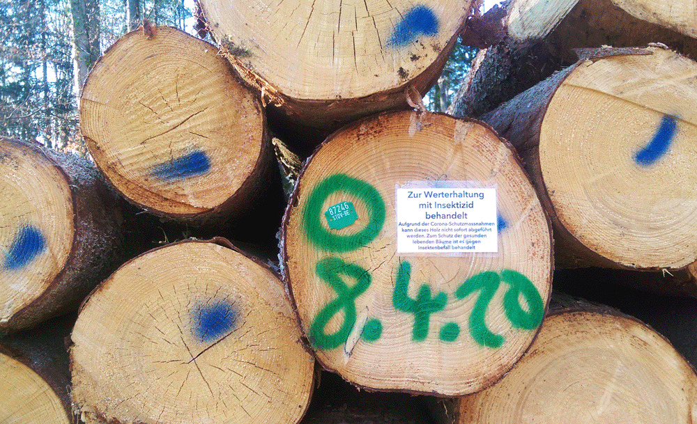 Pflanzenschutzmittel (PSM) im Wald zu verwenden, ist grundsätzlich verbunden. Es gibt aber Ausnahmen, in denen mit einer kantonalen Bewilligung Holz im Forst gespritzt werden darf. Dabei geht es um die Werterhaltung, denn durch abgestorbene Pilze verbläutes Holz mindern Verwendungsmöglichkeiten und Verkaufswert. Im schlimmsten Fall halbiert sich der Erlös, schreibt das Bundesamt für Umwelt Bafu in einer Mitteilung.Insektenfrass ermöglicht es Pilzen, ins Holz einzudringen, weshalb Insektizide eingesetzt werden.