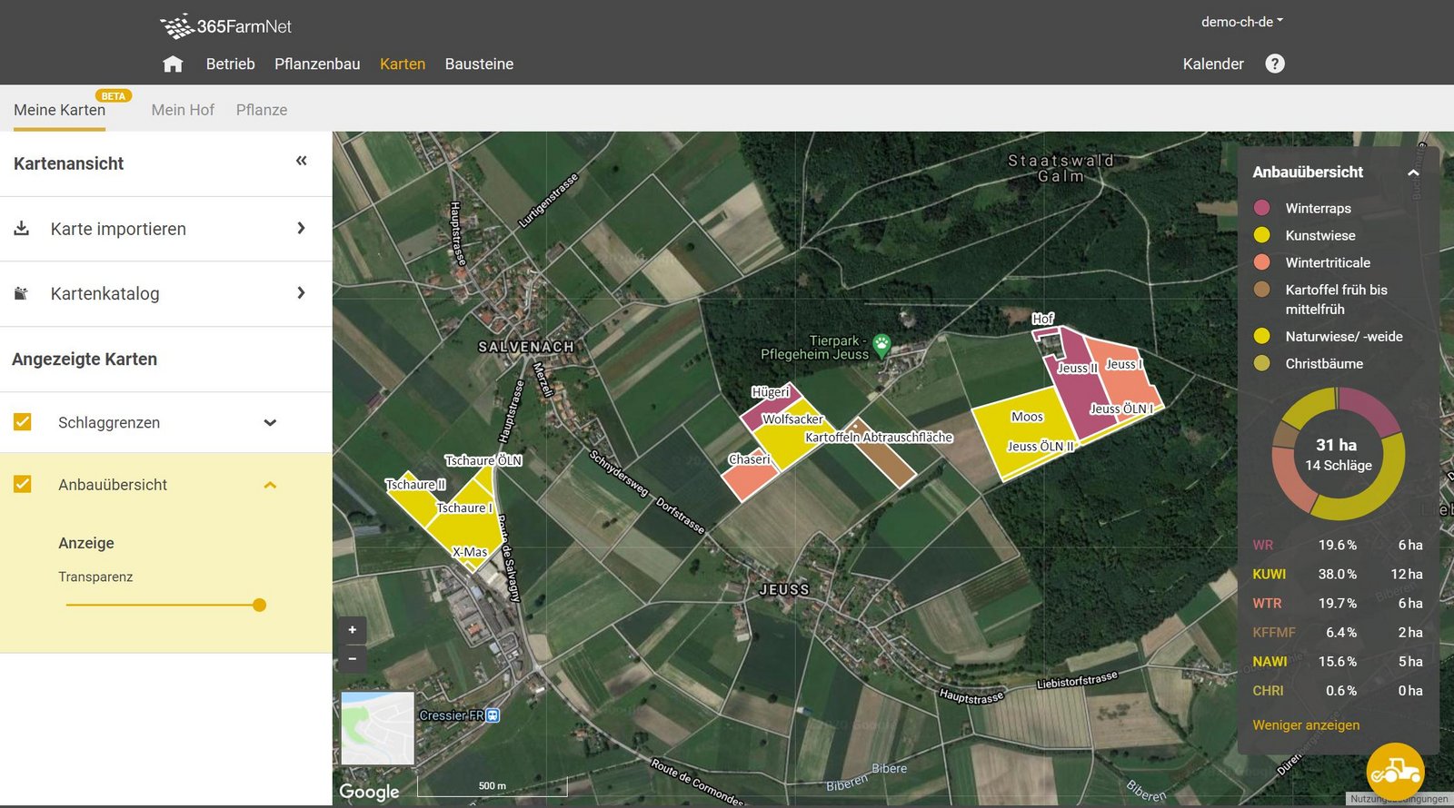 Die Technologie Partnerschaft mit dem deutschen 365FarmNet – Funktionen für die Schweizer Landwirtschaft zugeschnitten Daten werden in einer Cloud gespeichert und sind somit überall abrufbar Grundfunktionen sind kostenlos Bausteine können hinzugefügt werden (teilweise kostenpflichtig) Massnahmen unterwegs mit der 365Crop App erfassbar – für iOS oder Android – (Zugangsberechtigung Fr. 25.-/pro Betrieb) App…