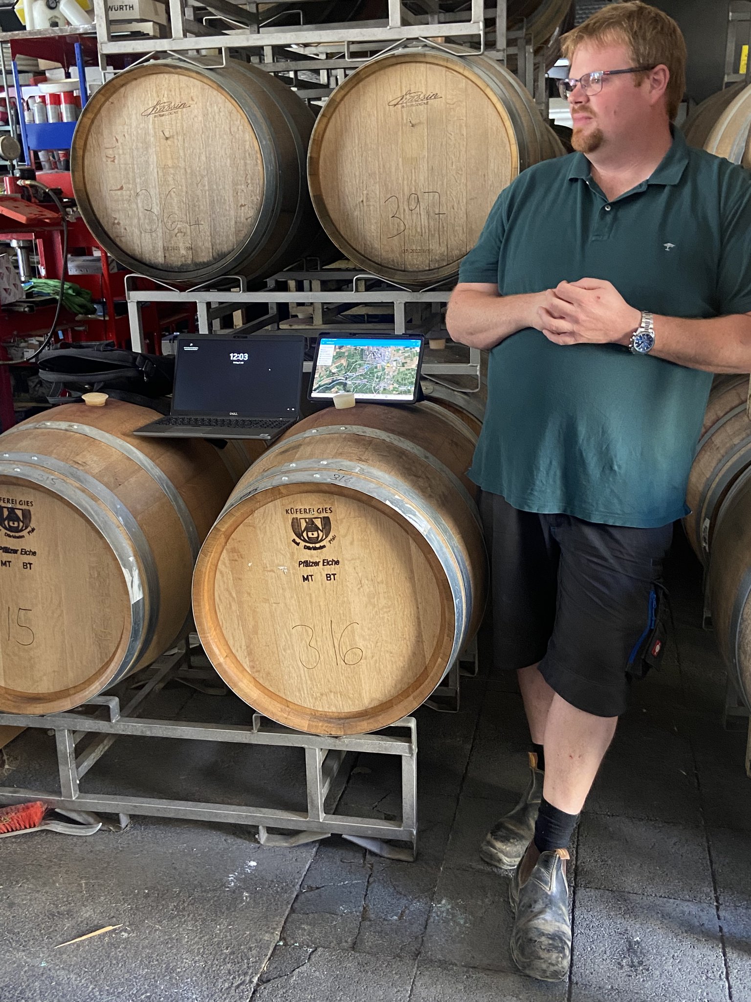 Doch das Programm kann viel mehr, als Aufgaben im Weinberg überwachen, wie Fabian Bartmann erklärt. Der Mitarbeiter der Raiffeisen-Warenzentrale Rhein-Main eG (RWZ) ist Spezialist für das Weinbau-Management-System und begleitet die Familie Schenk-Siebert, die zu den sieben Testbetrieben in Grünstadt gehört. «In Gesprächen mit unseren Kunden haben wir erfragt, was eine sinnvolle digitale Lösung für ein Weingut können muss», erläutert Fabian Bartmann. «Diese Anforderungen haben wir dann an die Software-Entwickler weitergegeben», ergänzt er. Jetzt gehe es darum, das praxistaugliche Instrument den Interessenten zu verkaufen.