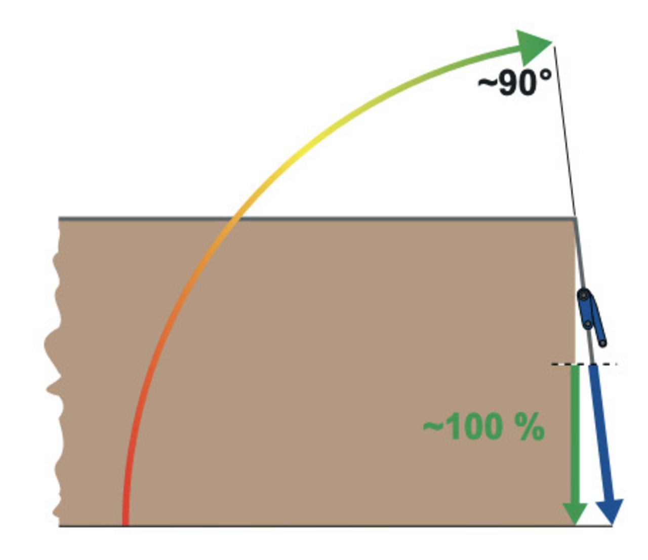 Mit Rätschen lassen sich Zurrgurte von Hand fest spannen. Damit die Vorspannkraft vollständig auf die Ladung übertragen wird, sollte der Gurt möglichst senkrecht nach oben zeigen. Mit abnehmendem Winkel reduziert sich die übertragene Kraft, unter 30 Grad machen Zurrgurte keinen Sinn mehr. (Bild Merkblatt)